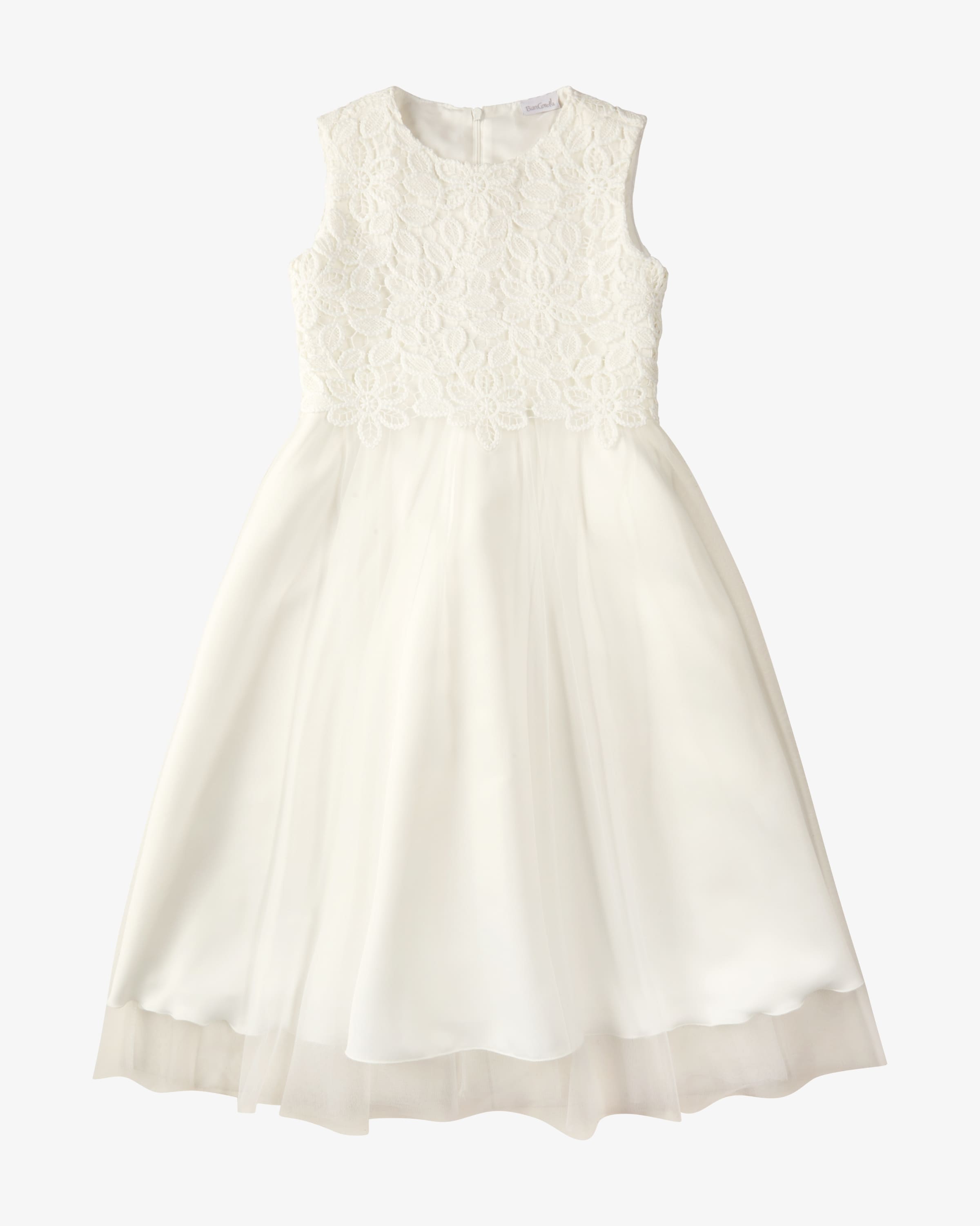Dress for girls from Weise in Ivory. Specialist for festive children's clothing - from communion to wedding guest. Immerse yourself in a world full of of lightness and grace that will make little flower girls or communion children children with this dress. The lace harmonizes wonderfully with the flowing flowing tulle and gives the wearer a feeling of special security and stylish and stylish light-heartedness.