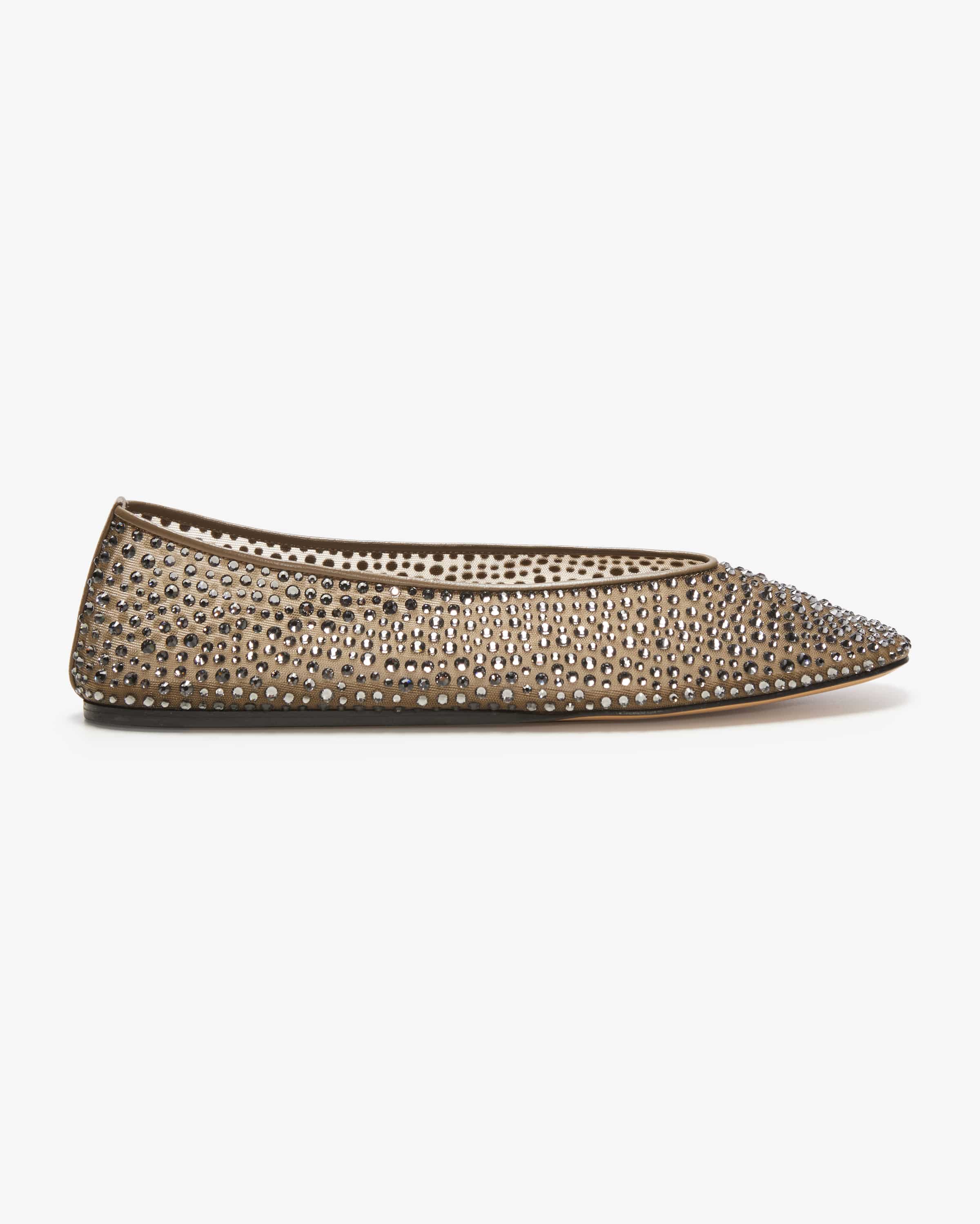 Luna ballerinas for women from Le Monde Béryl in taupe and silver. Classic and elegant at the same time. The model made from semi-transparent mesh and gemstone trim thanks to the sophisticated shoe shape, it is a stylish companion for feminine looks. feminine looks.