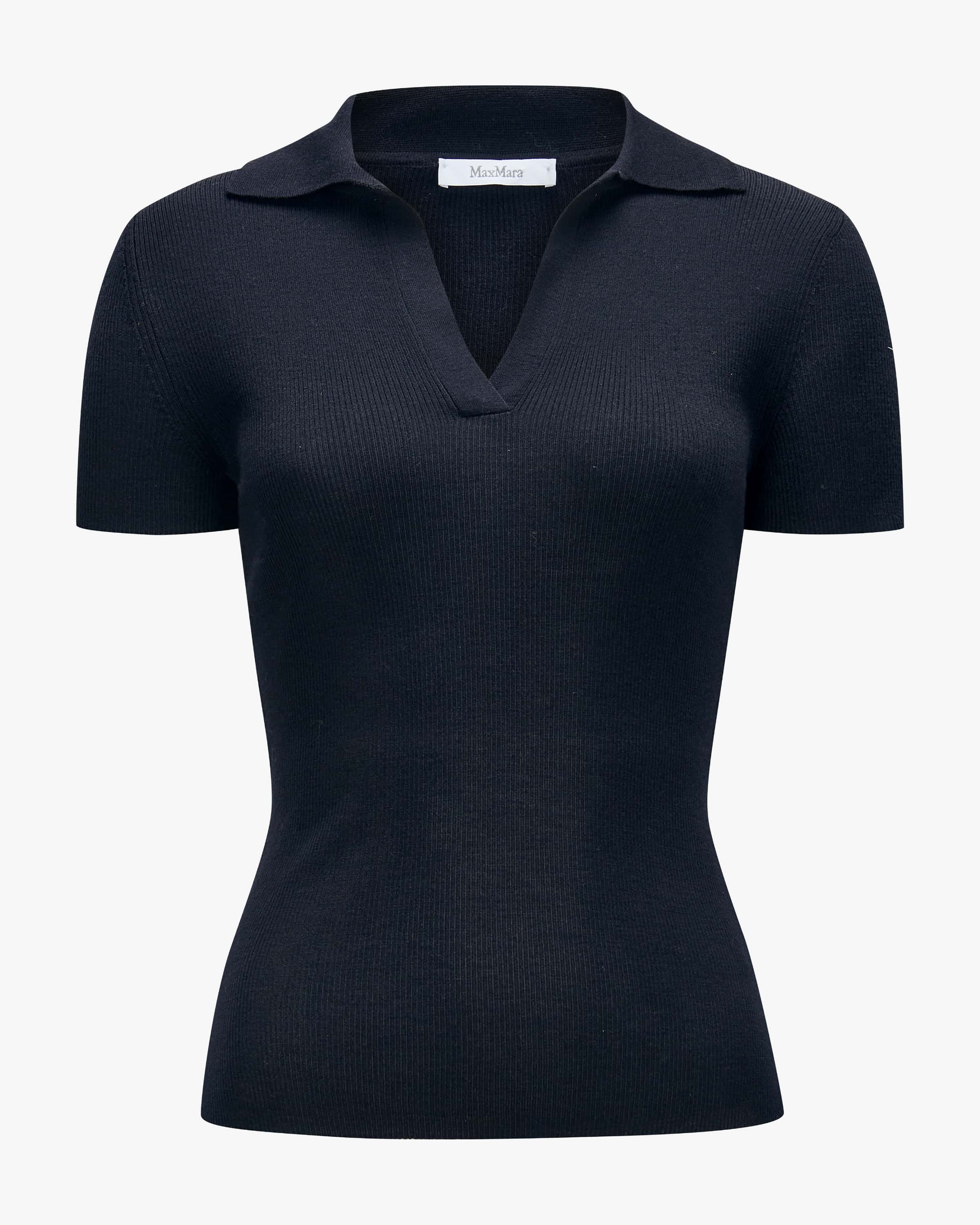 Albero knit shirt for women from Max Mara in navy. The model impresses with