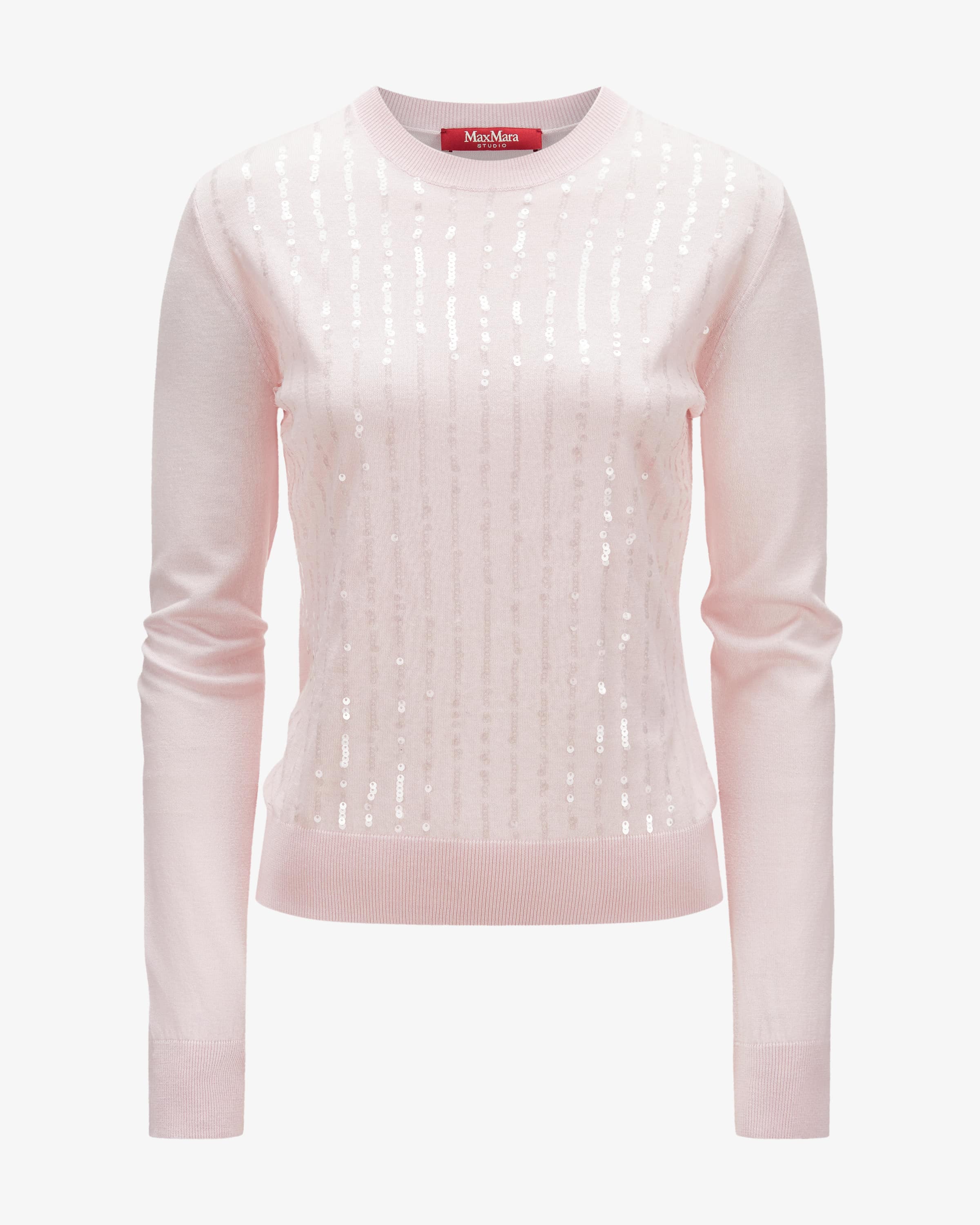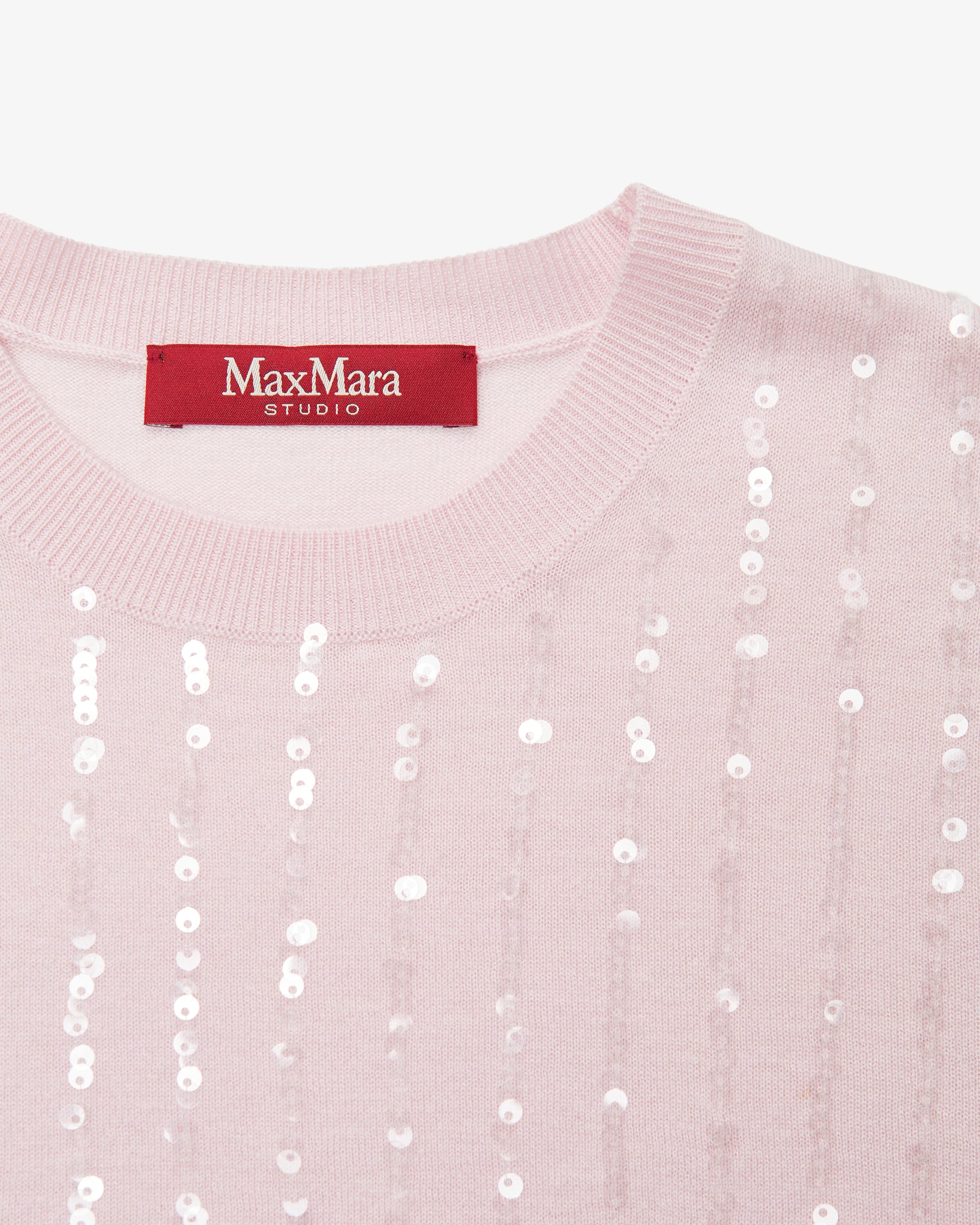 Gabarra sweater for women from Max Mara Studio in rosé. Feminine, modern, wearable - Max Mara's more feminine line. This model also impresses with its slim silhouette and lightweight silk and wool fabric, while the iridescent sequins sequins emphasize the feminine look.