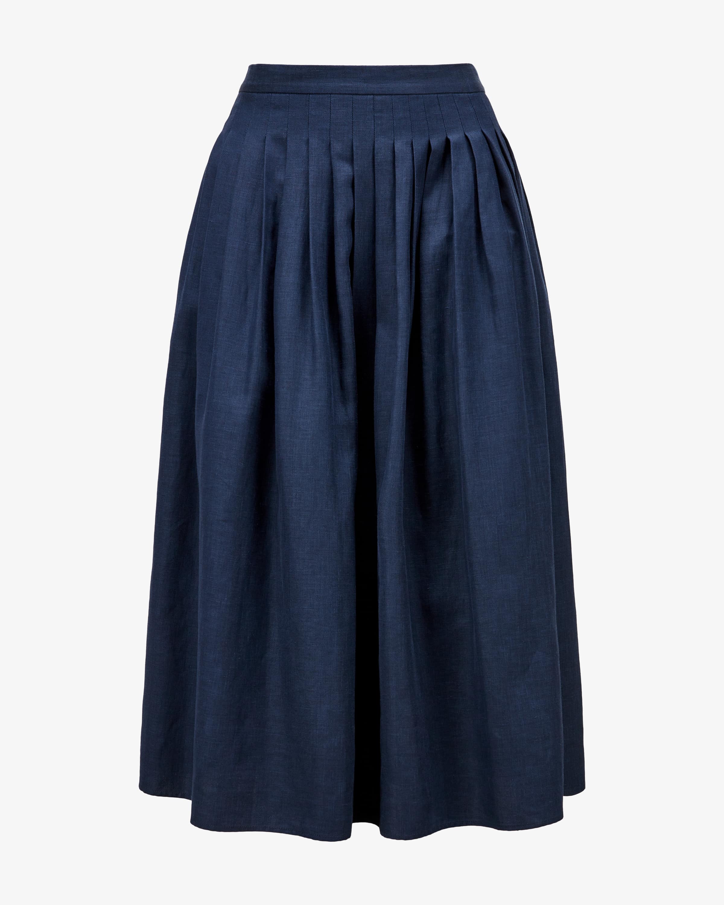 Pleated skirt for women by Manzoni 24 in dark blue. This model is characterized by by the high-quality Summertime Loro Piana fabric made from a light linen and wool blend which, together with the elasticated waistband, promises a high level of comfort and creates an airy favorite with a maritime flair.