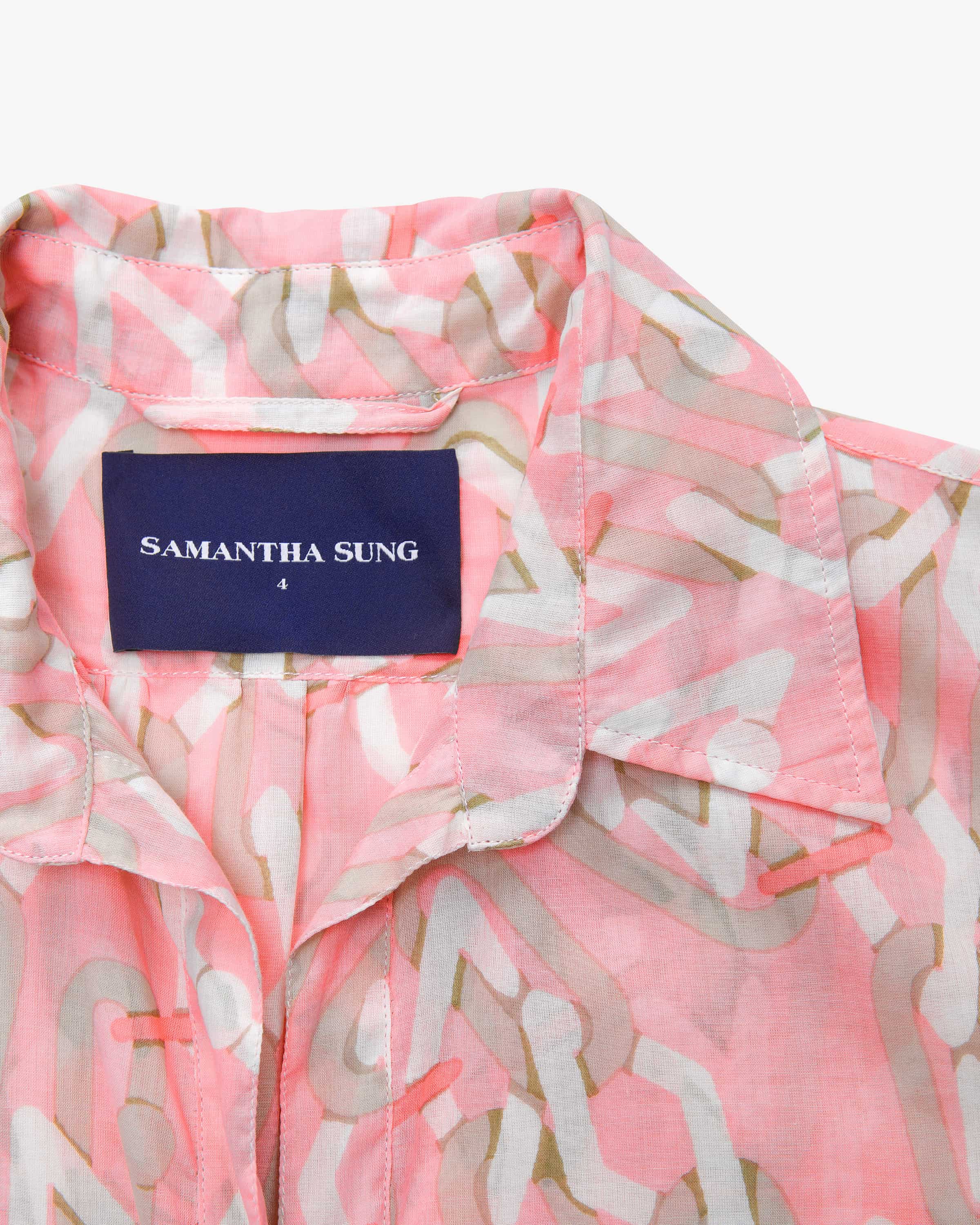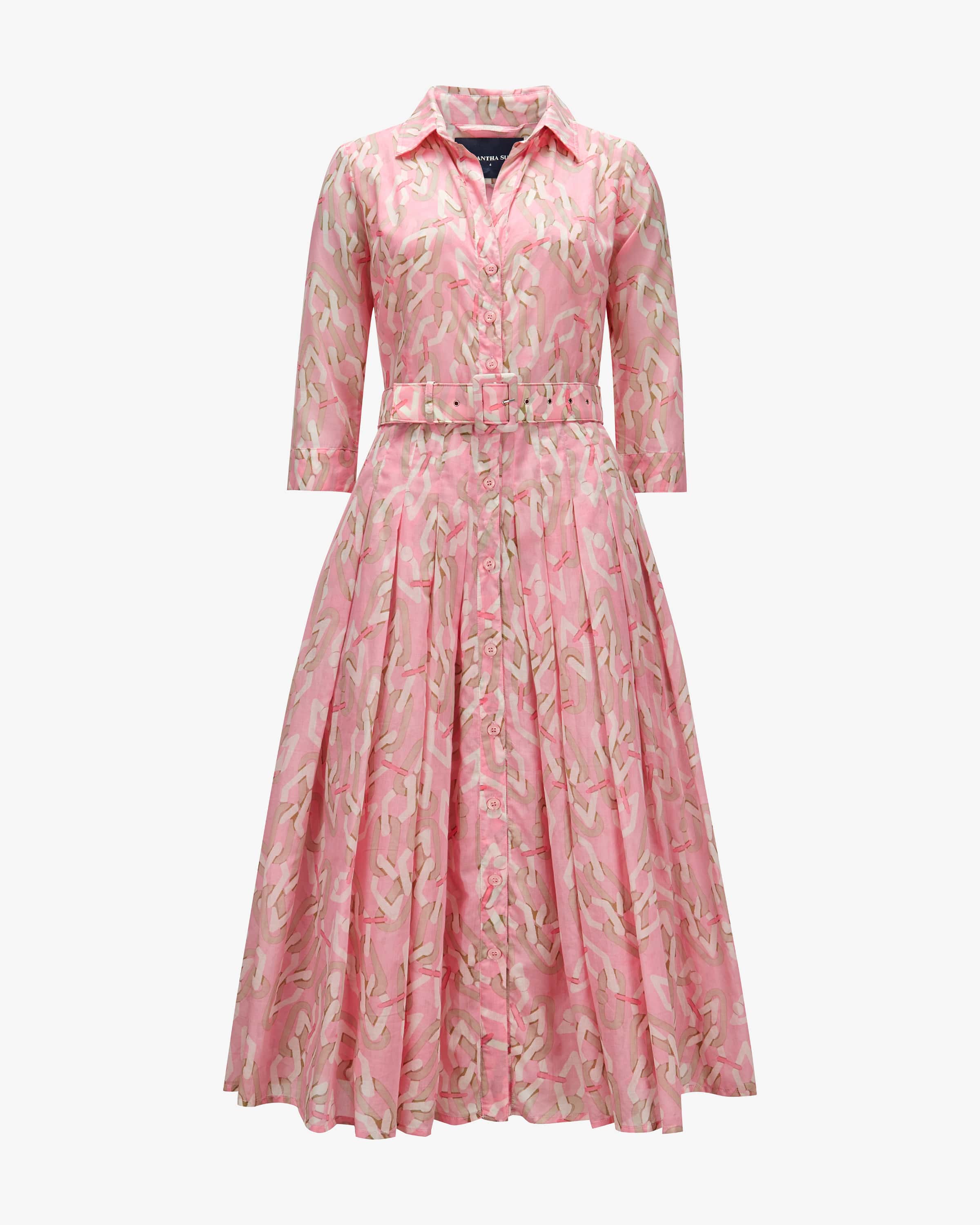 Audrey shirt dress for women by Samantha Sung in pink, light gray and white.