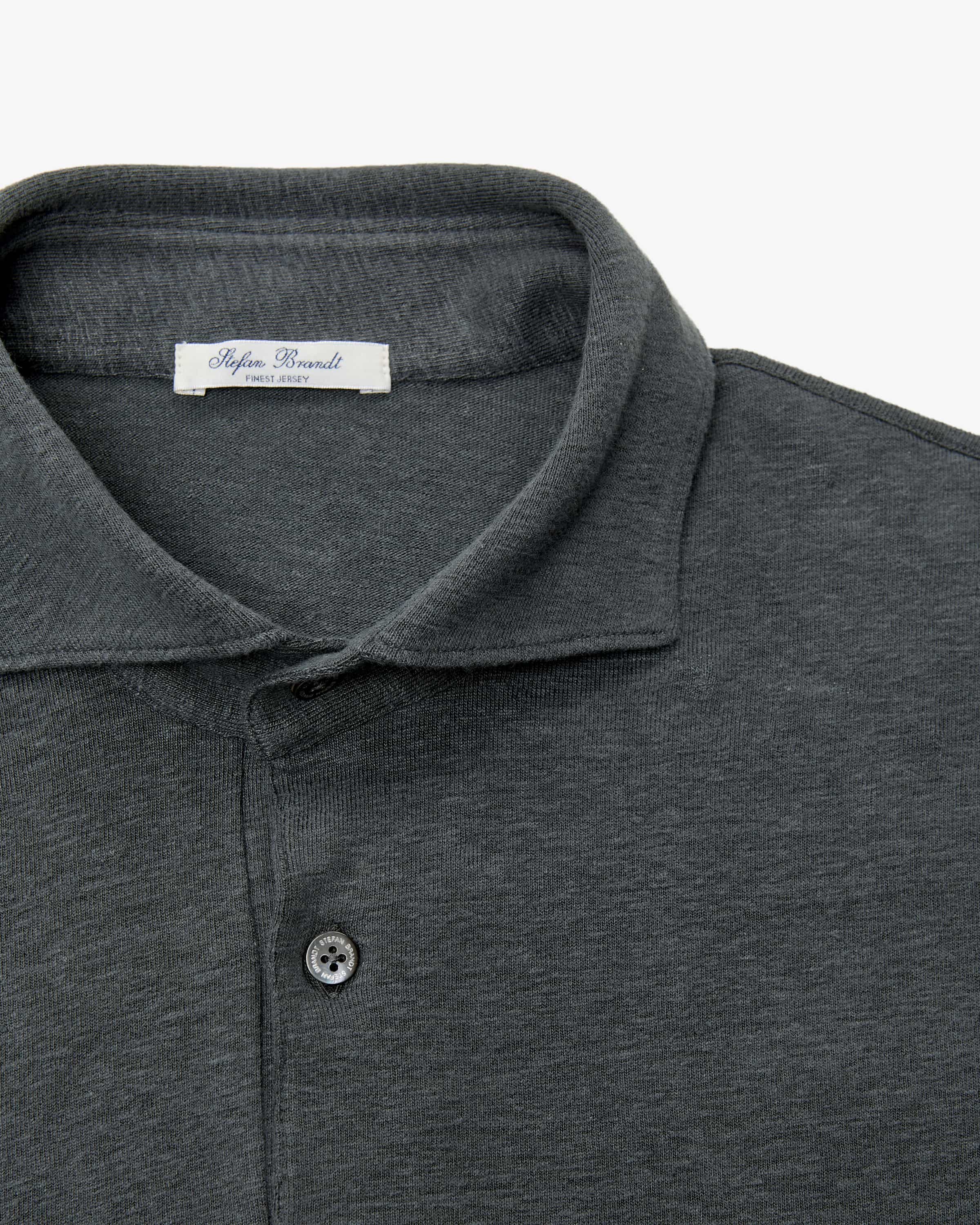 Laurin linen polo shirt for men from Stefan Brandt in anthracite. German luxury