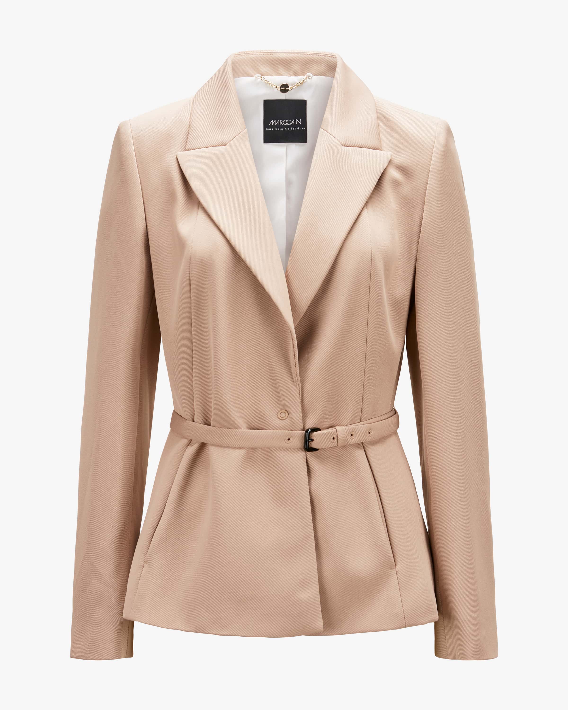Blazer for women from Marc Cain in taupe. The German brand stands for confident, feminine looks. This model is characterized by classic details and the narrow, detachable waistband - a feminine power look with that certain something. with that certain something.