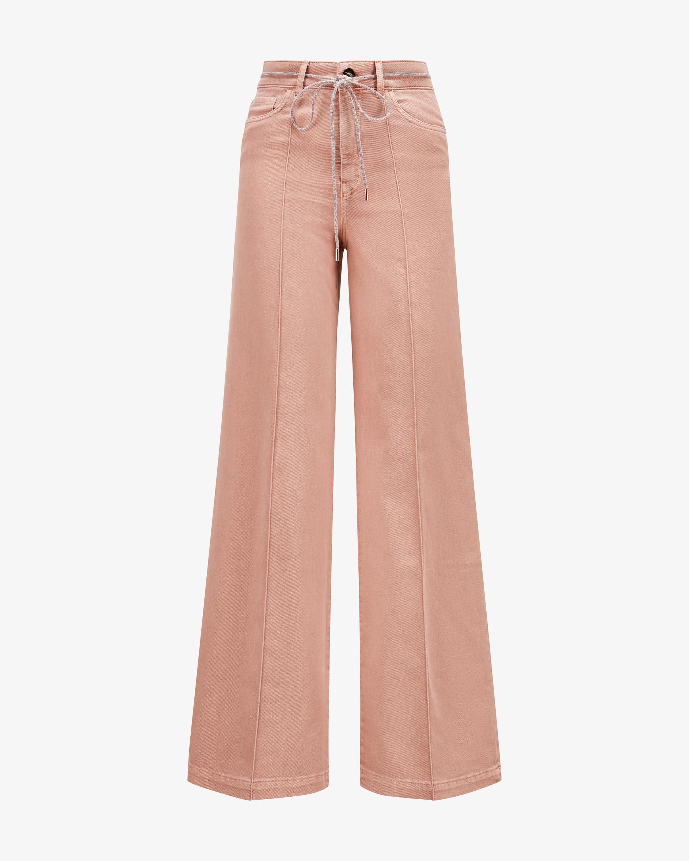 Warri High Waist Wide Fit jeans for women from Marc Cain in rosé. Marc Cain is a German premium fashion brand that has been inspiring modern, self-confident women women with high-quality materials and unusual prints. This model also impresses with its wide silhouette, while the stretchy cotton denim blend ensures comfort and a perfect fit. The narrow glitter cord and logo details skilfully round off the fashionable style.