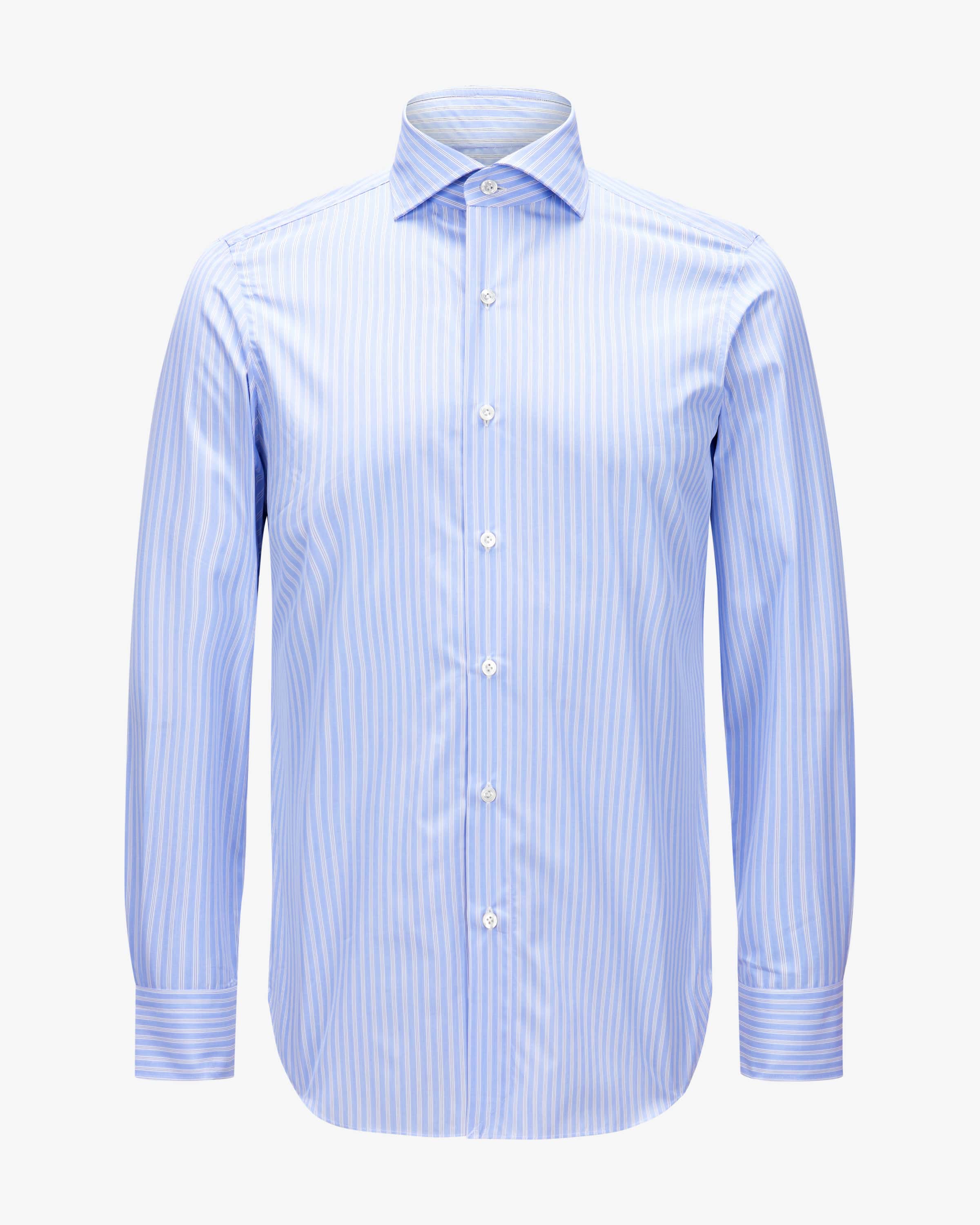 Napoli Eduardo shirt for men from Finamore 1925 in blue and white. Neapolitan shirt manufacturer with over 100 years of tradition - hand-sewn & individual. With a tailored cut and comfortable cotton quality, the shirt is the ideal partner for business appearances. The fine stripe pattern adds a stylish touch.