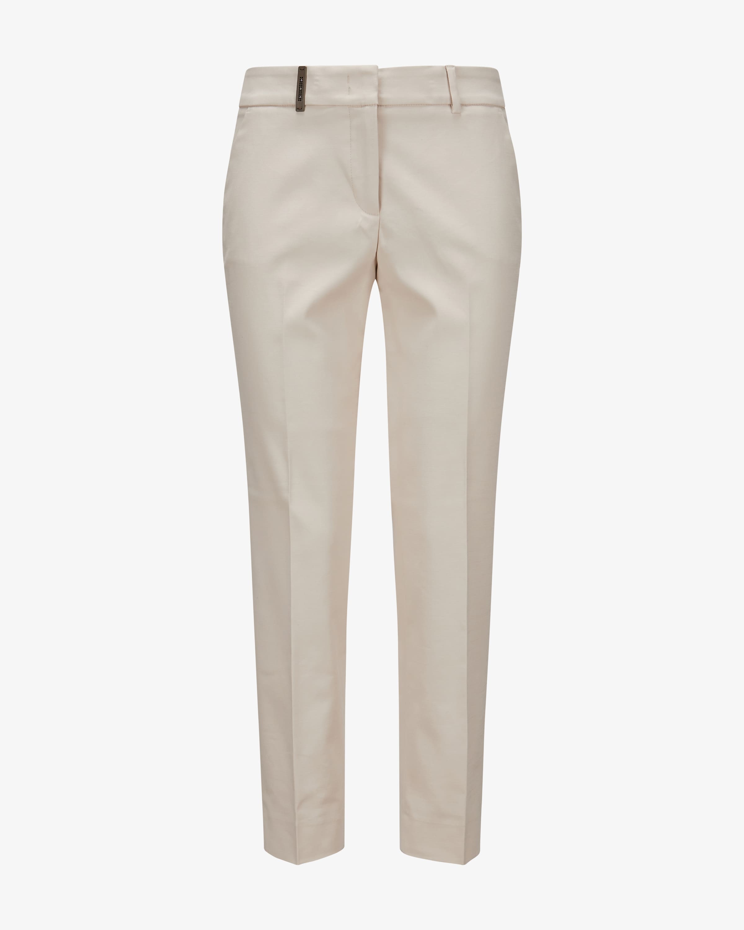 7/8 trousers for women from Peserico Easy in sand. The casual line from Peserico interprets relaxed looks with the same high standards of quality and style. This cropped model also impresses with its stretchy material blend, while the clean design and classic clean design and classic details create a timeless companion for versatile create a timeless companion for versatile styles.