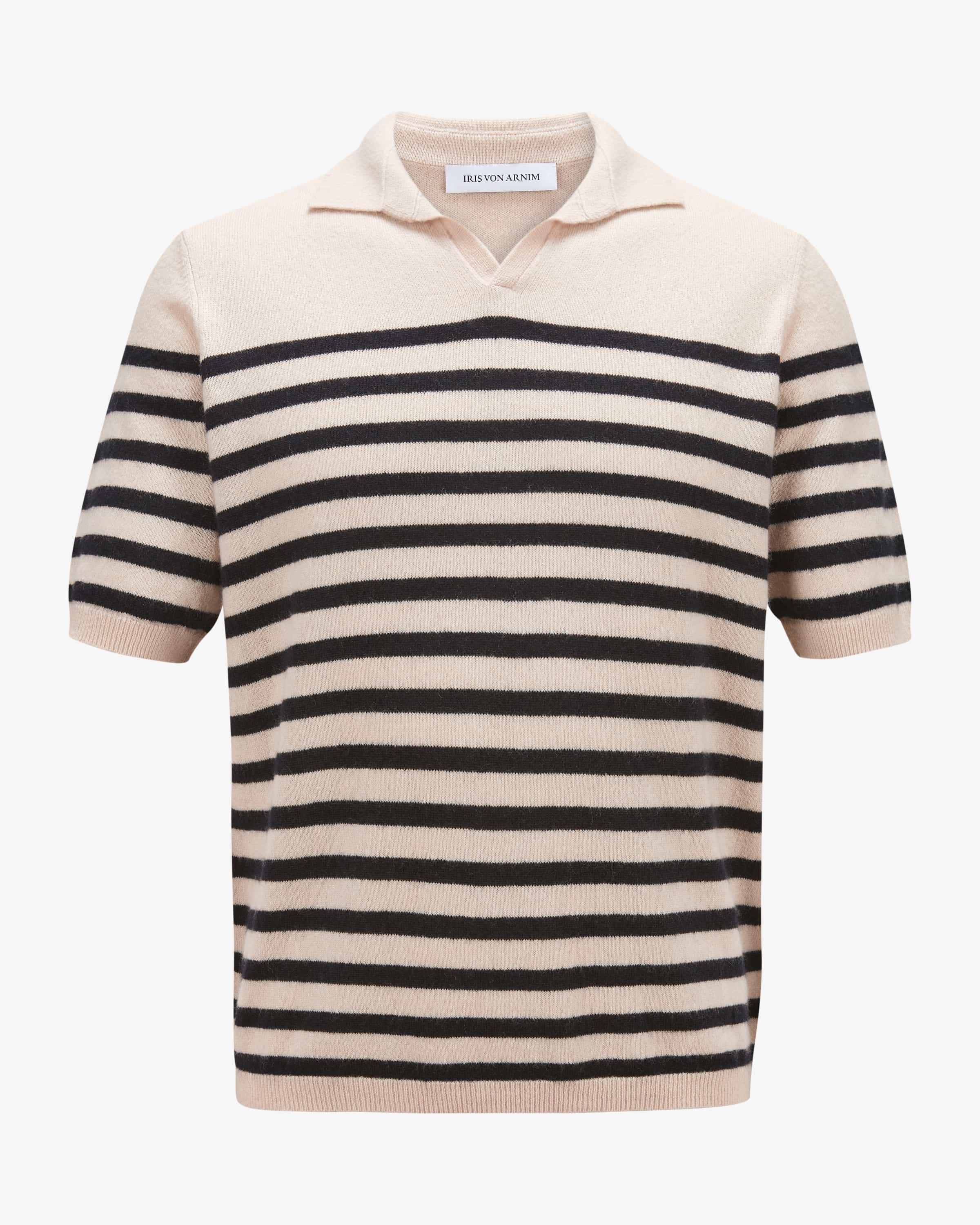 Ameca knitted polo for men from Iris von Arnim in nude and black. The Hamburg brand is an icon of cashmere craftsmanship - founded by Iris von Arnim and known for top quality and elegant designs. The model impresses with high-quality material mix and the striking striped pattern that lends the look timeless elegance. timeless elegance. The meticulous workmanship and the subtle colors underline the brand's sense of style.
