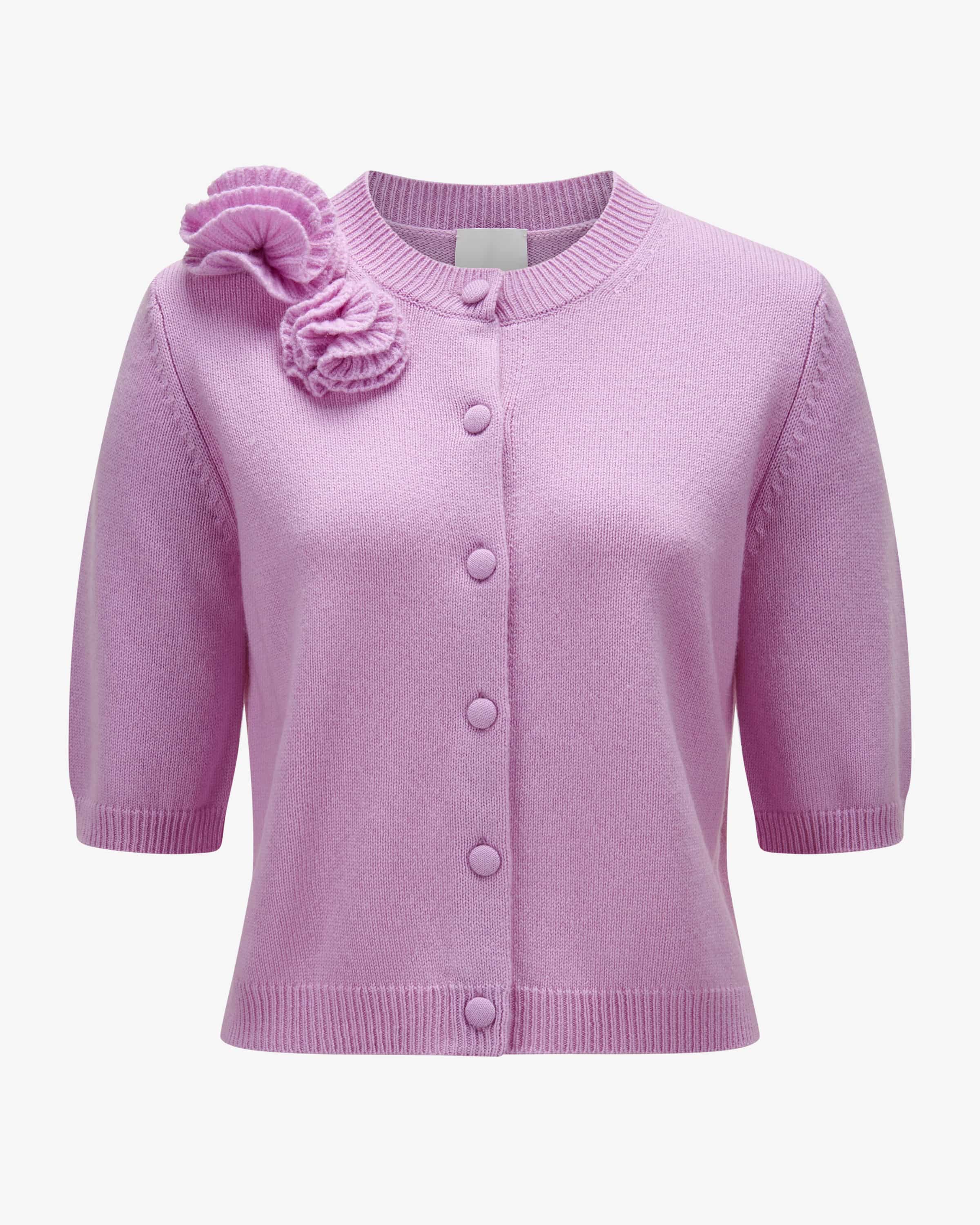 Cardigan for women from Allude in lilac. The Munich label was founded in 1993 by Andrea and Christian Karg and is known for luxurious knitwear made from fine cashmere. fine cashmere. While the high-quality virgin wool and cashmere blend ensures comfortable moments, the wide cut with shortened sleeves adds a casual touch. casual touch. At the same time, the draped floral appliqués create special accents.