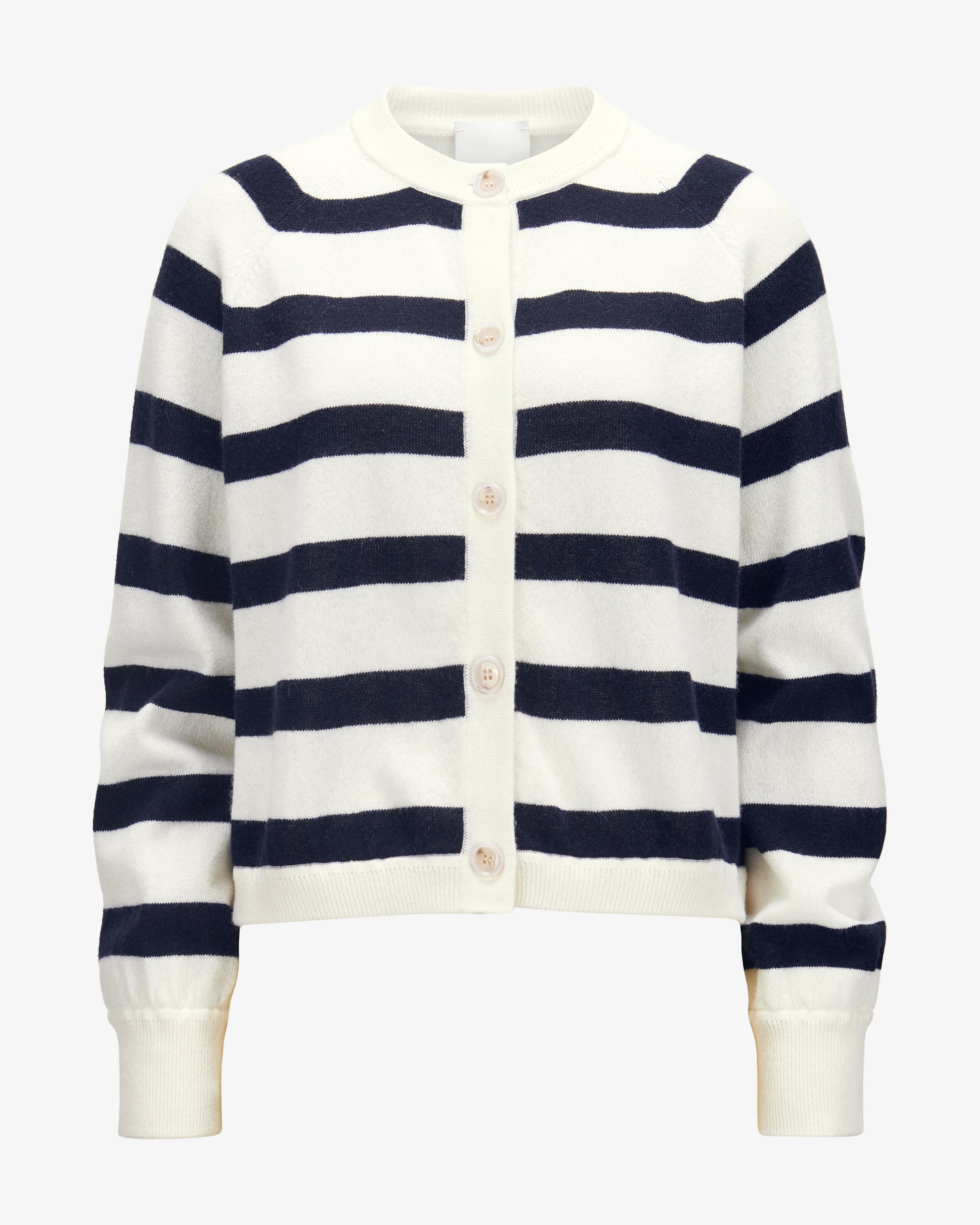Cardigan for women from Allude in off-white and black. The Munich-based company Allude stands for fashion that radiates self-confidence and timeless individuality. Made from a high-quality virgin wool and cashmere blend, the wide-cut model impresses with its comfortable feel, while the fine knit design is knit design is complemented in a modern way by the block stripe pattern.