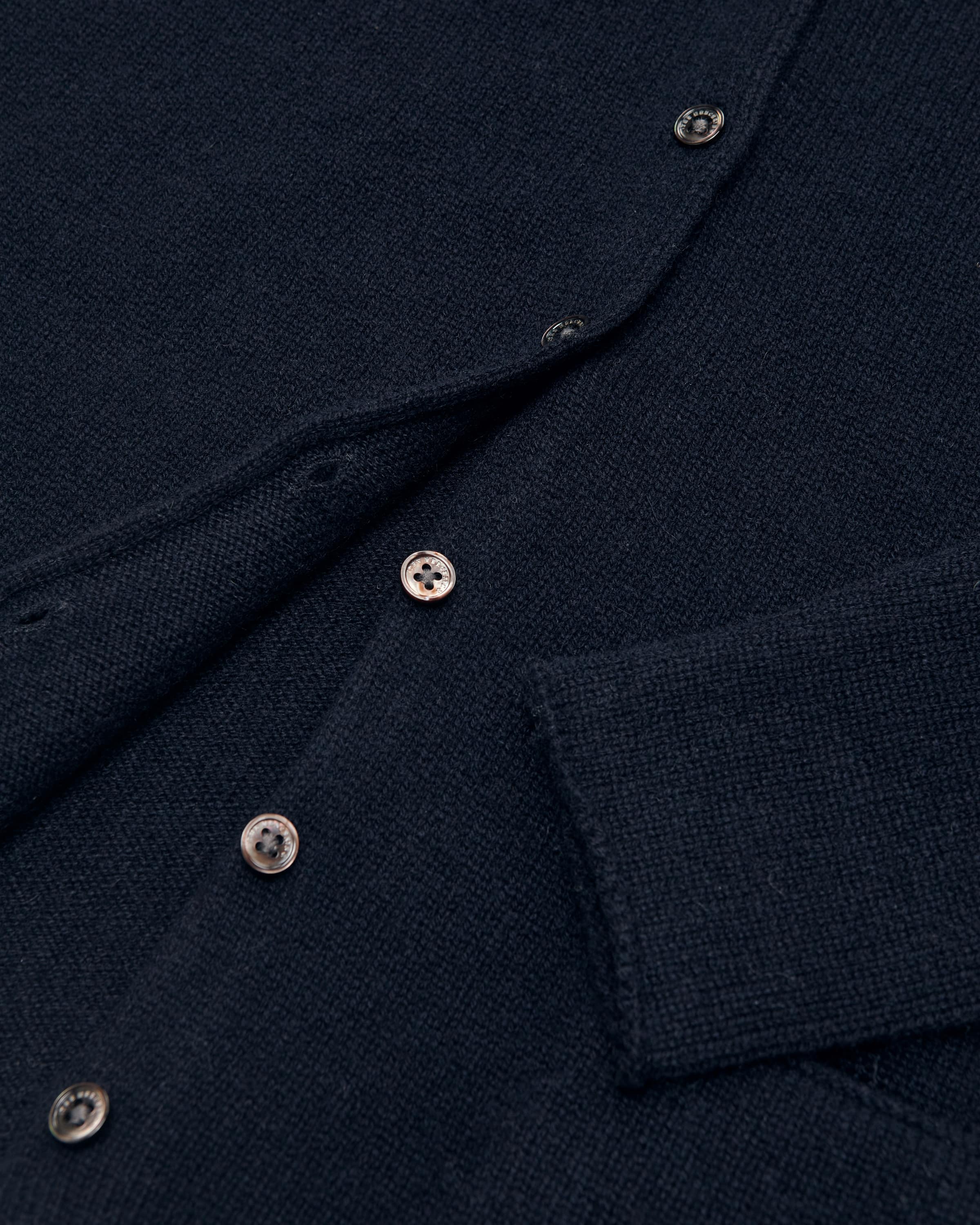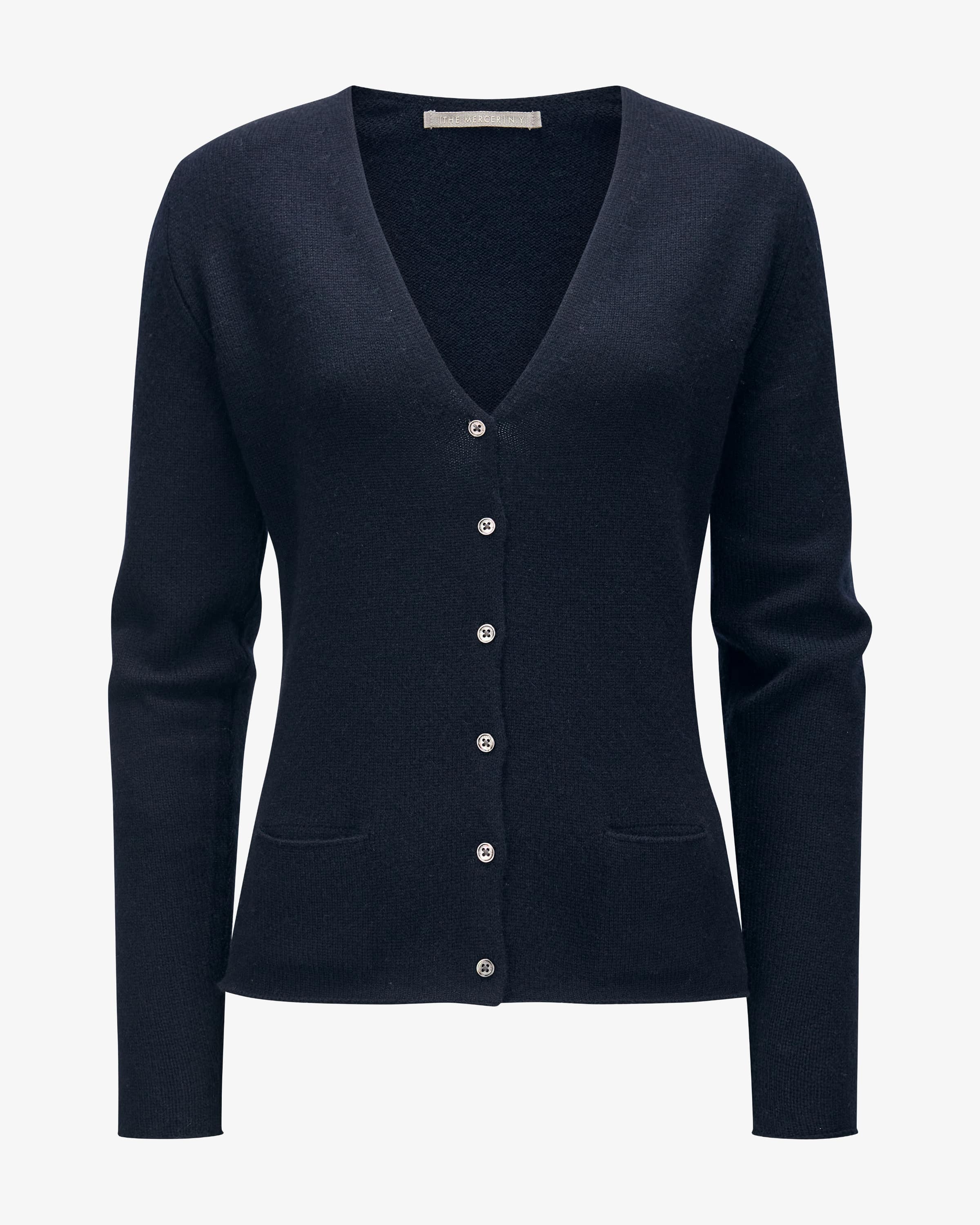 Cardigan for women by (The Mercer) N.Y. in navy. Founded in New York, the brand stands for minimalist luxury with an urban edge. This model impresses thanks to the high-quality cashmere fabrication with a particularly particularly soft feel, while the small, iridescent mother-of-pearl logo buttons and the two and the two slit pockets create a feminine casual favorite.