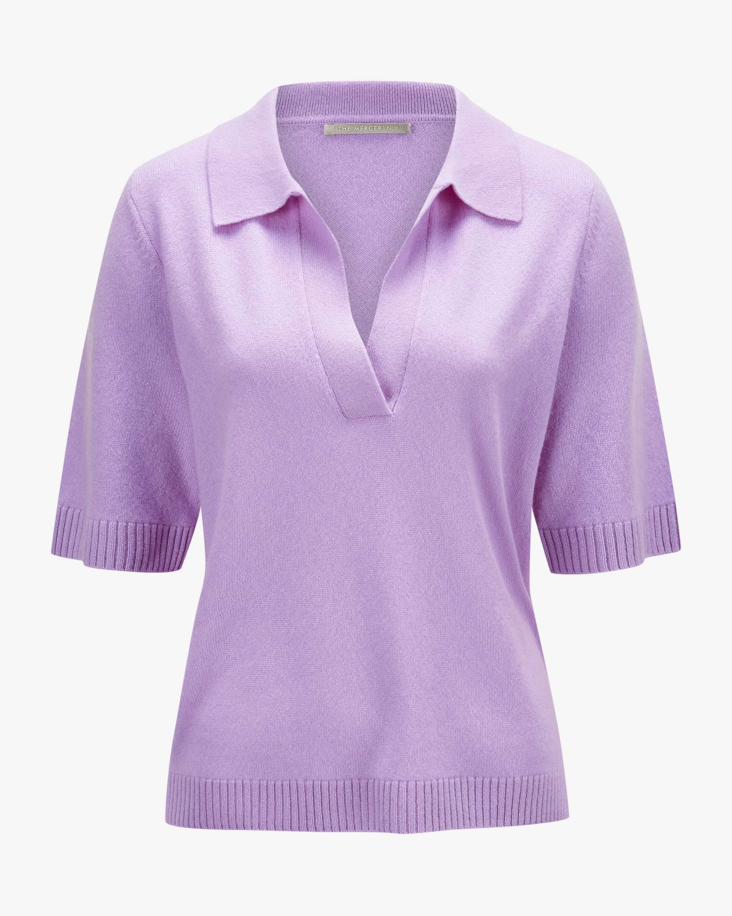 Knitted shirt for women by (The Mercer) N.Y. in lilac. Founded in New York, the brand stands for minimalist luxury with an urban edge. This wide model impresses thanks to the high-quality cashmere fabrication with a particularly particularly soft feel, while the classic knit design with a varsity collar creates a casual creates a casual companion.