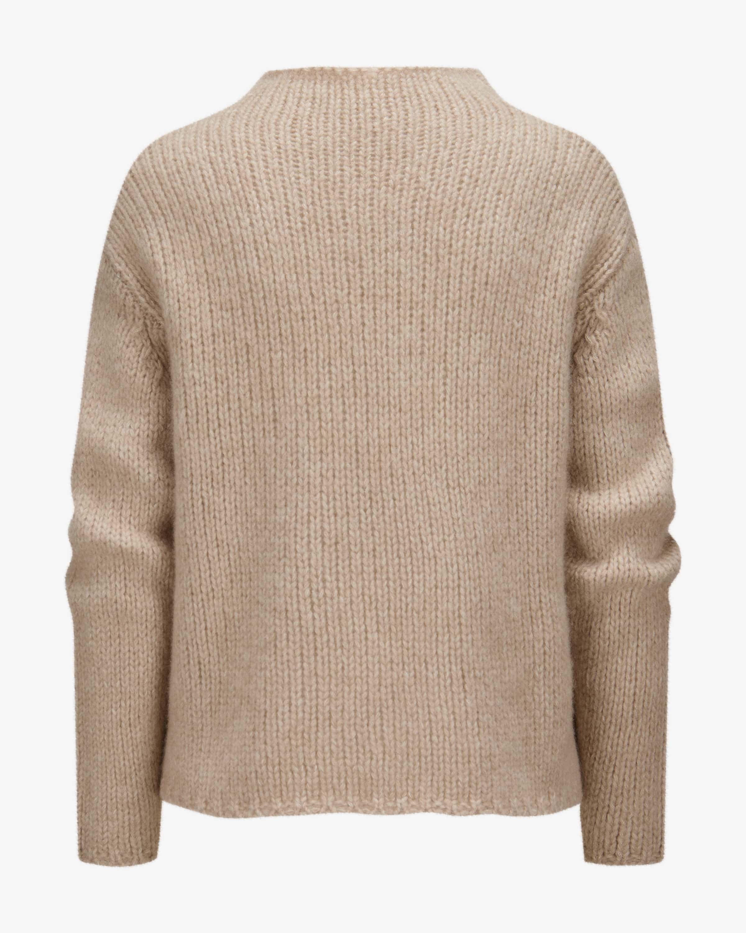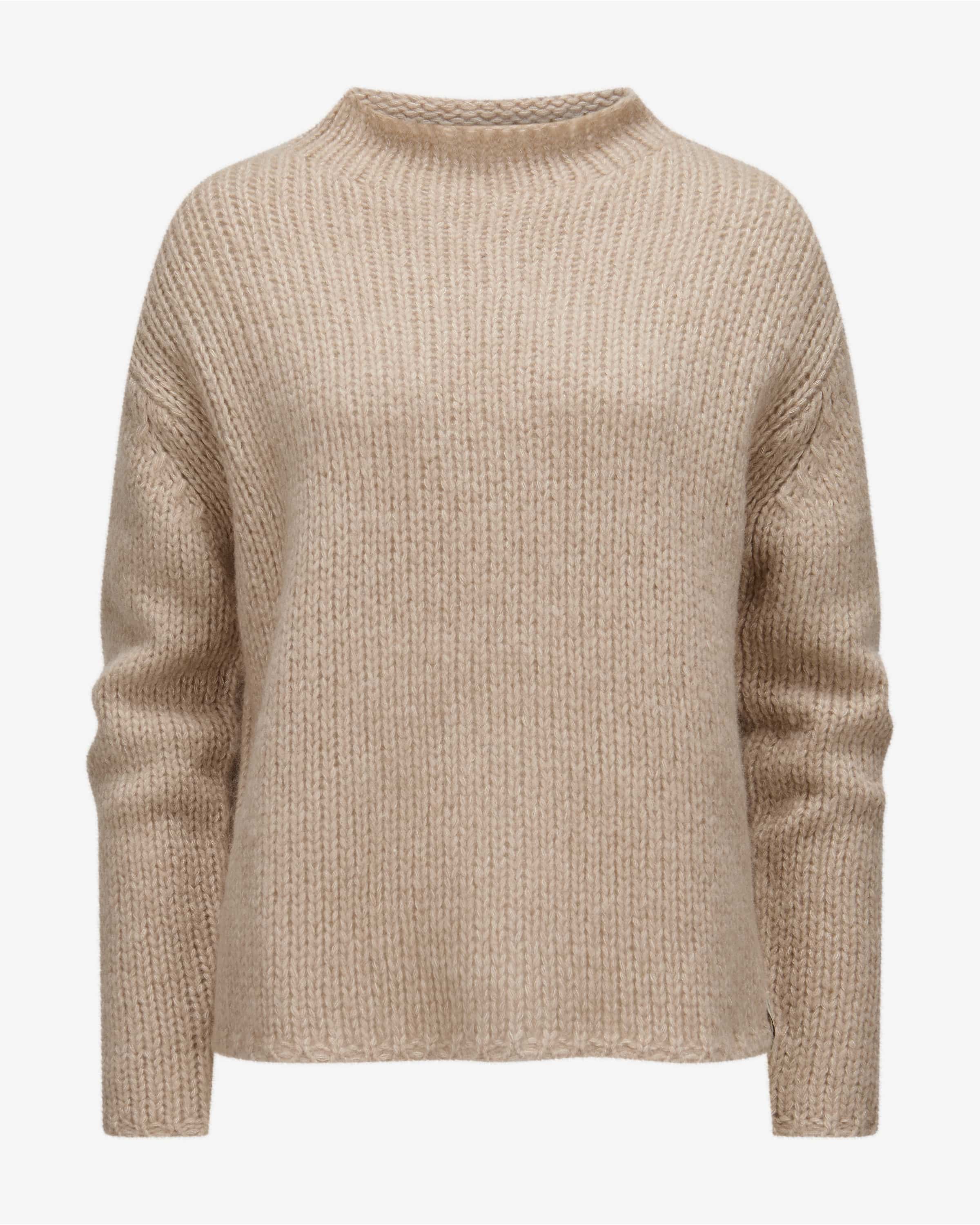 Cashmere silk sweater for women from Henry Christ in sand. Light luxury from Hamburg - recognizable by its subtle colors. This chunky knit model is also impressive both haptically and visually with its high-quality cashmere-silk blend, while the timeless design ensures a classic look. The discreet glittering overlock seams on the sides also add a fashionable accent.
