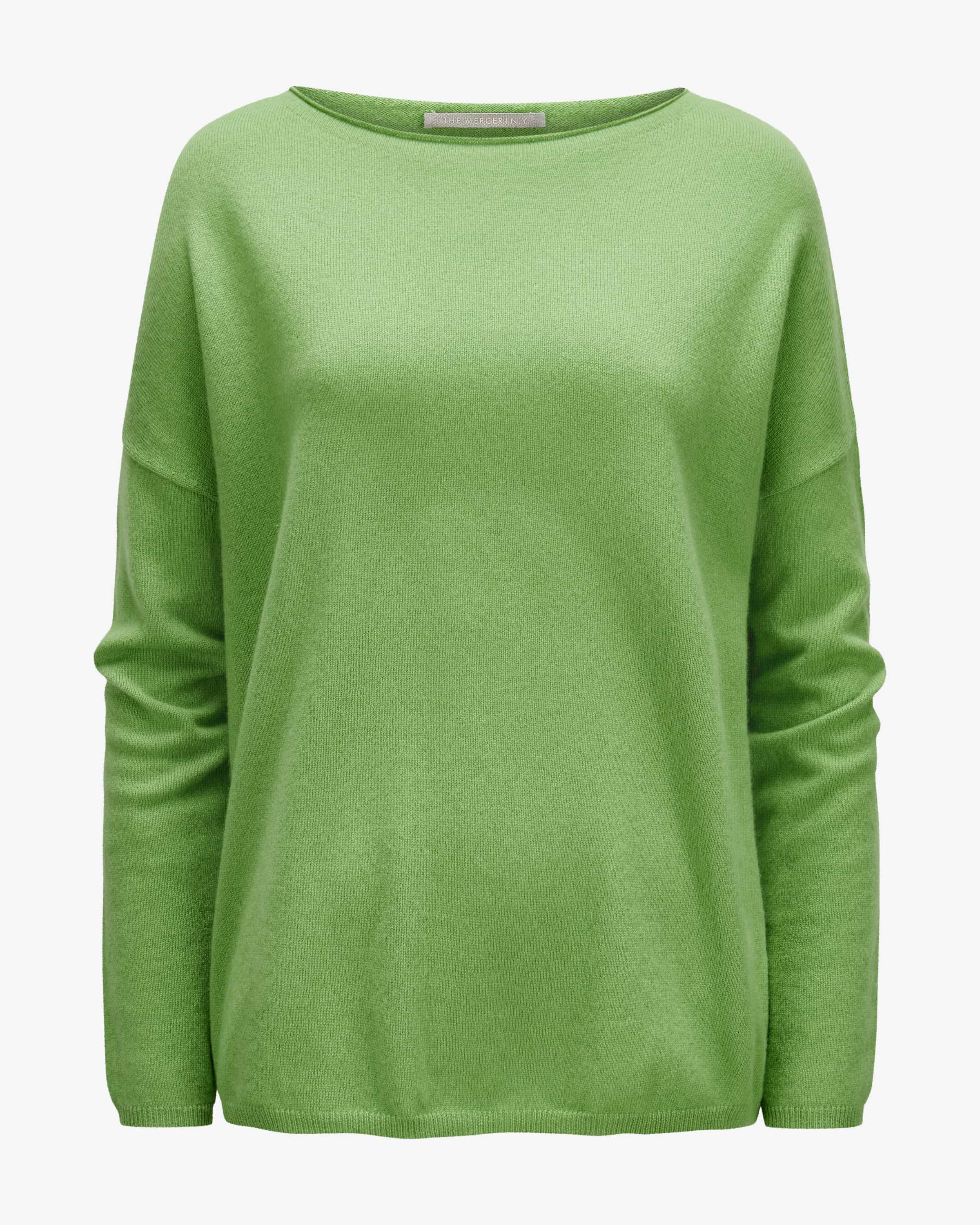 Sweater for women by (The Mercer) N.Y. in green. Founded in New York, the brand the brand stands for minimalist luxury with an urban edge. This model is particularly soft to the touch thanks to the high-quality cashmere finish, while the oversized feel, while the oversized silhouette with dropped shoulders creates a casual knit basic. knit basic.