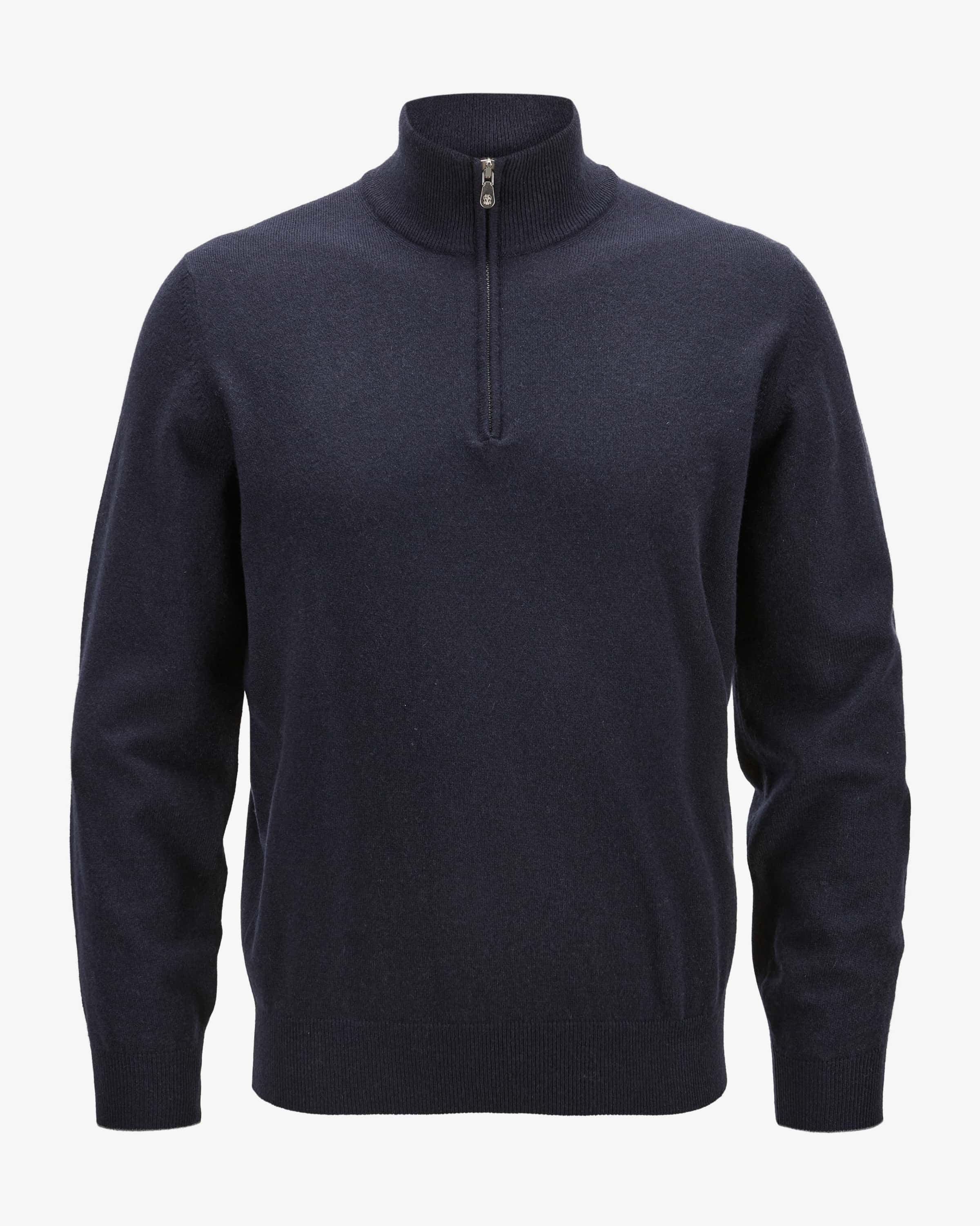 Cashmere troyer for men from Brunello Cucinelli in navy. The fine knit sweater is made from high-quality cashmere and is extremely comfortable to wear comfort, while the classic details create an create an everyday favorite. Piped trims add the finishing touch