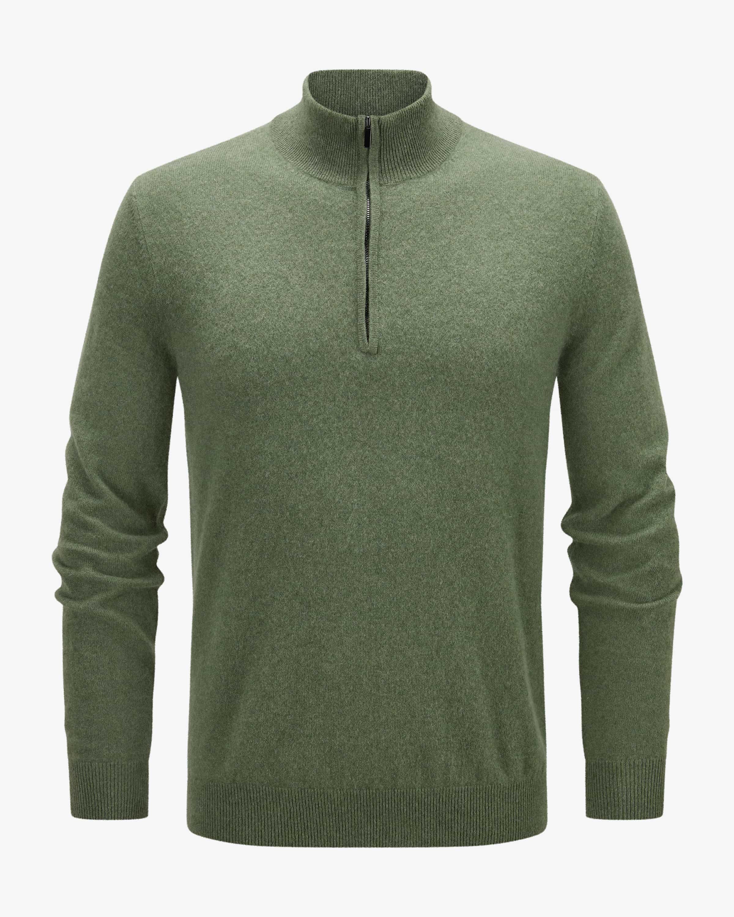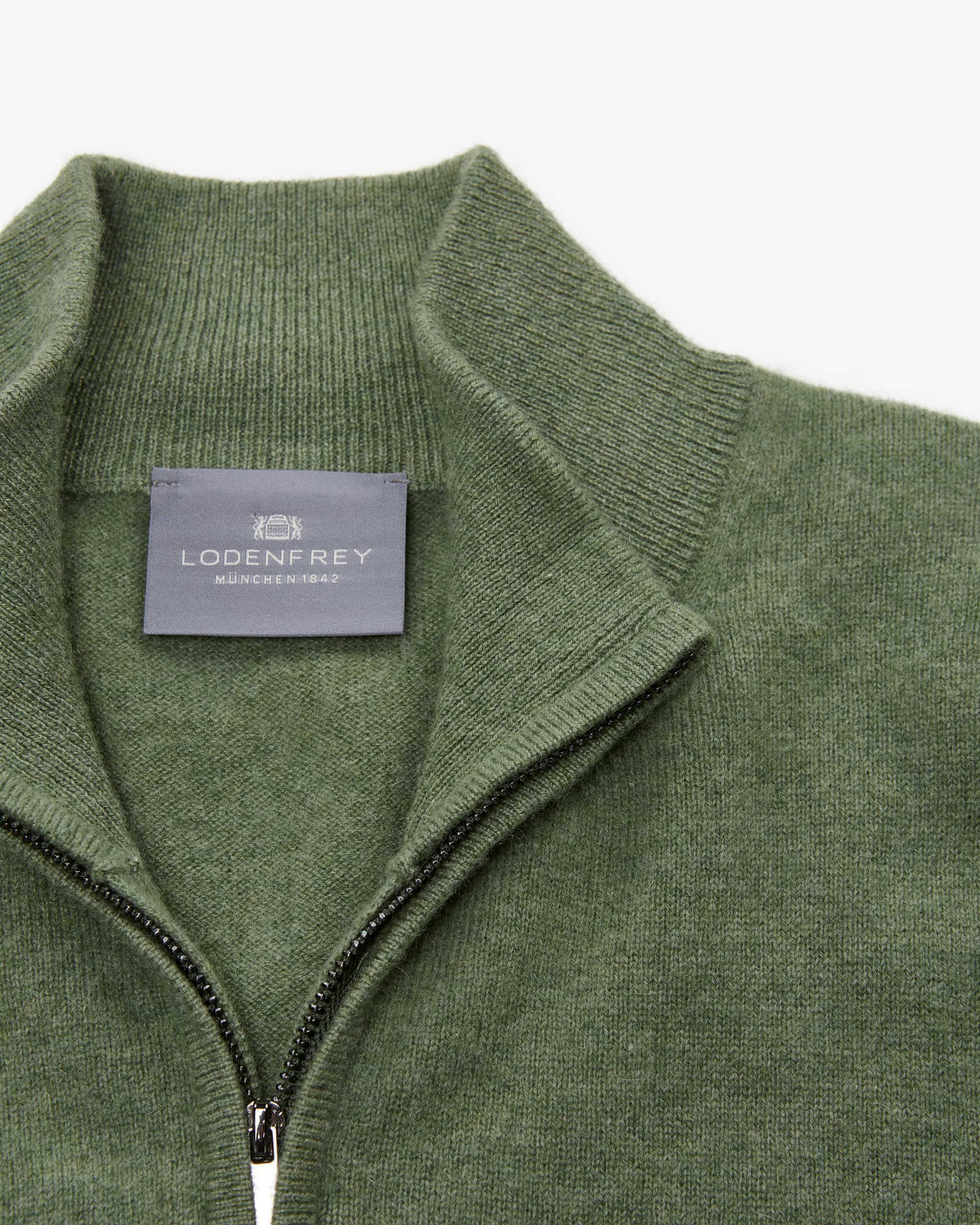 Cashmere troyer for men from LODENFREY in sage. The simple model made from high-quality cashmere is a timeless piece thanks to its classic knitted design makes it a timeless casual favorite, while the modern troyer collar adds a fashionable accents.