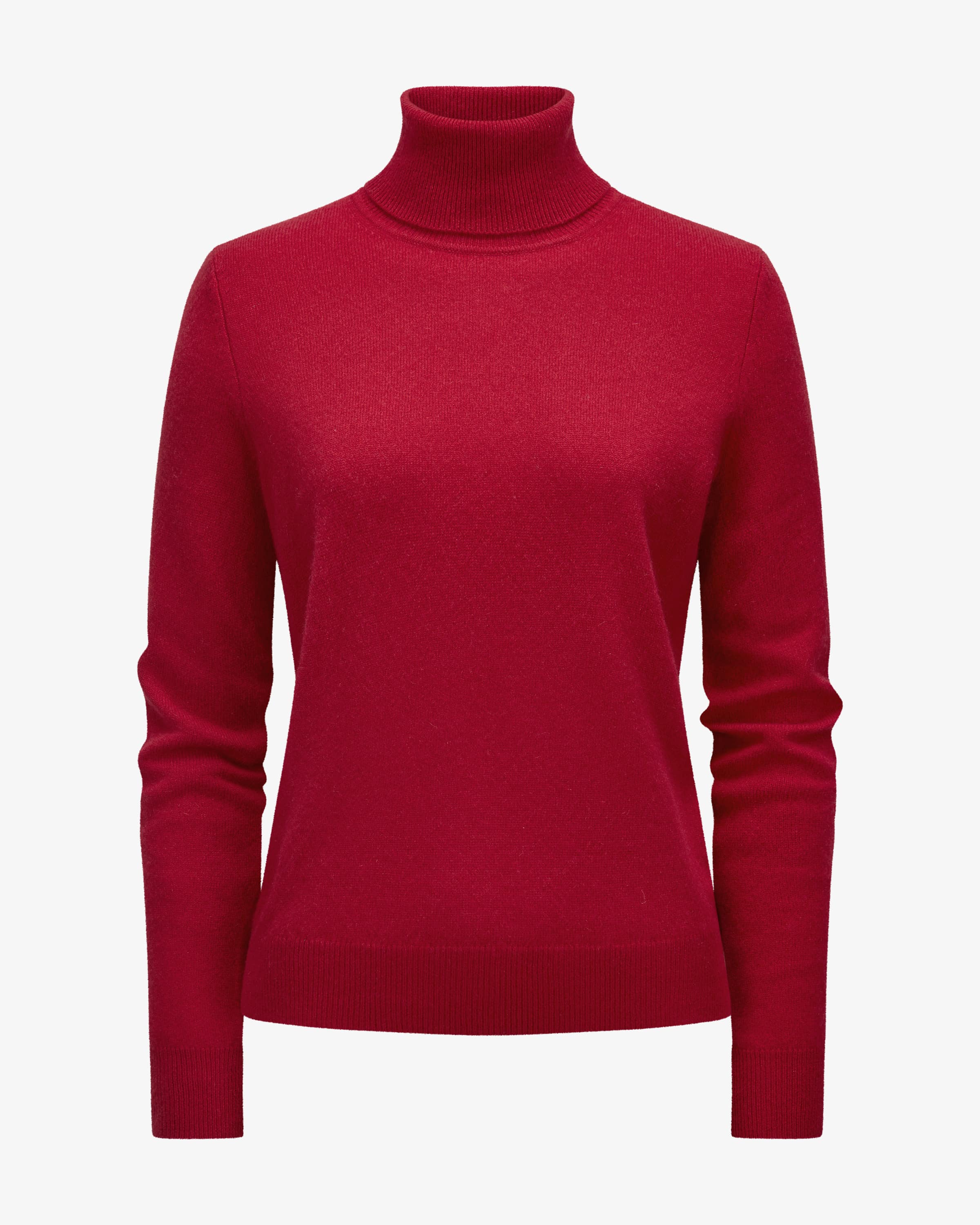 Cashmere turtleneck sweater for women from Luisa Di Carpi in red. While the cashmere quality promises a pleasant feel, the clean knit design ensures a timeless look. design ensures a timeless look.