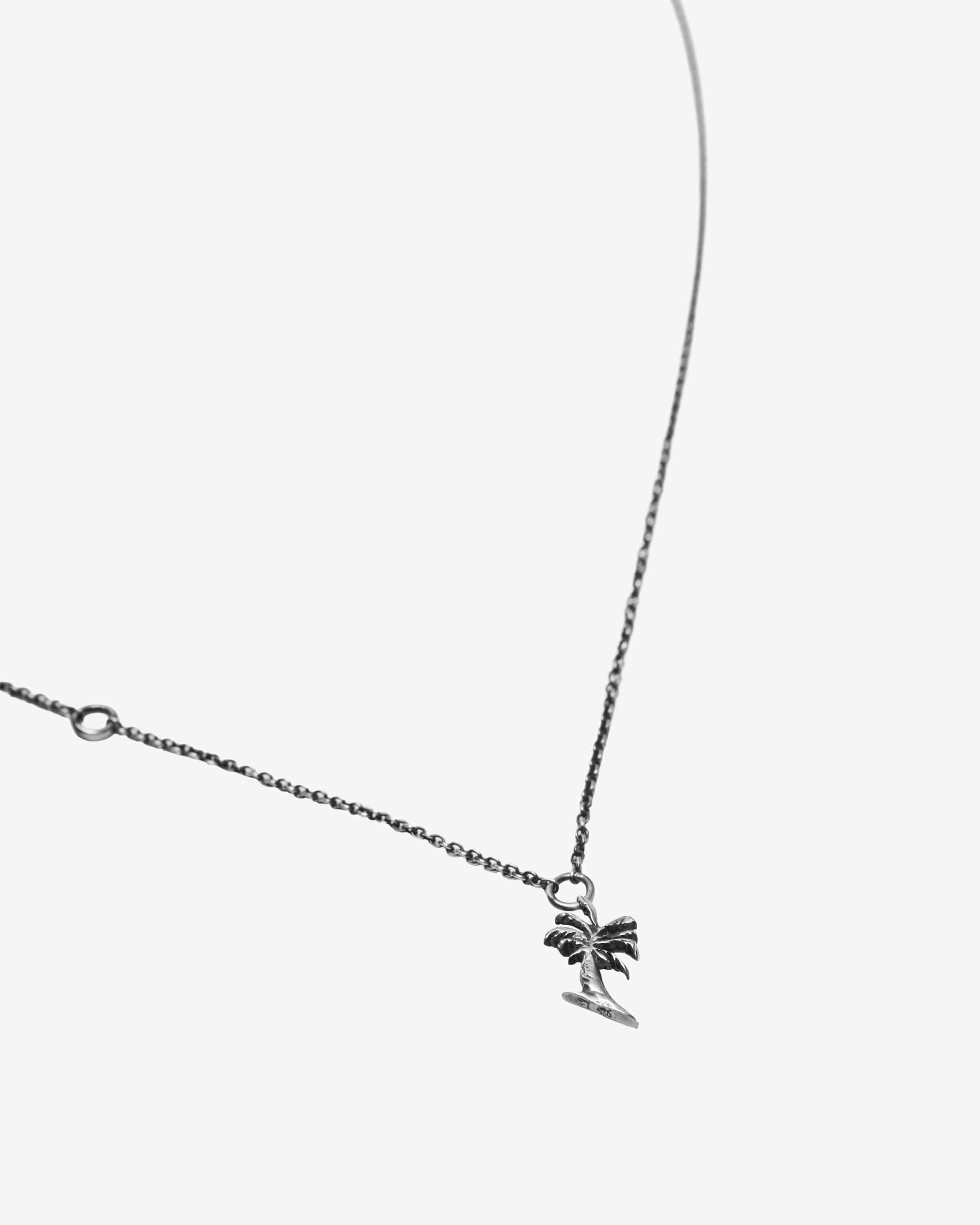 Chain Mini Palm necklace for men from Werkstatt München in silver. Handmade in Germany - The Munich manufactory inspires with exquisite and selected selected fabrics and the highest level of craftsmanship. The model is characterized by minimalist aesthetic, while a filigree palm tree pendant adds a special touch. adds a special touch.