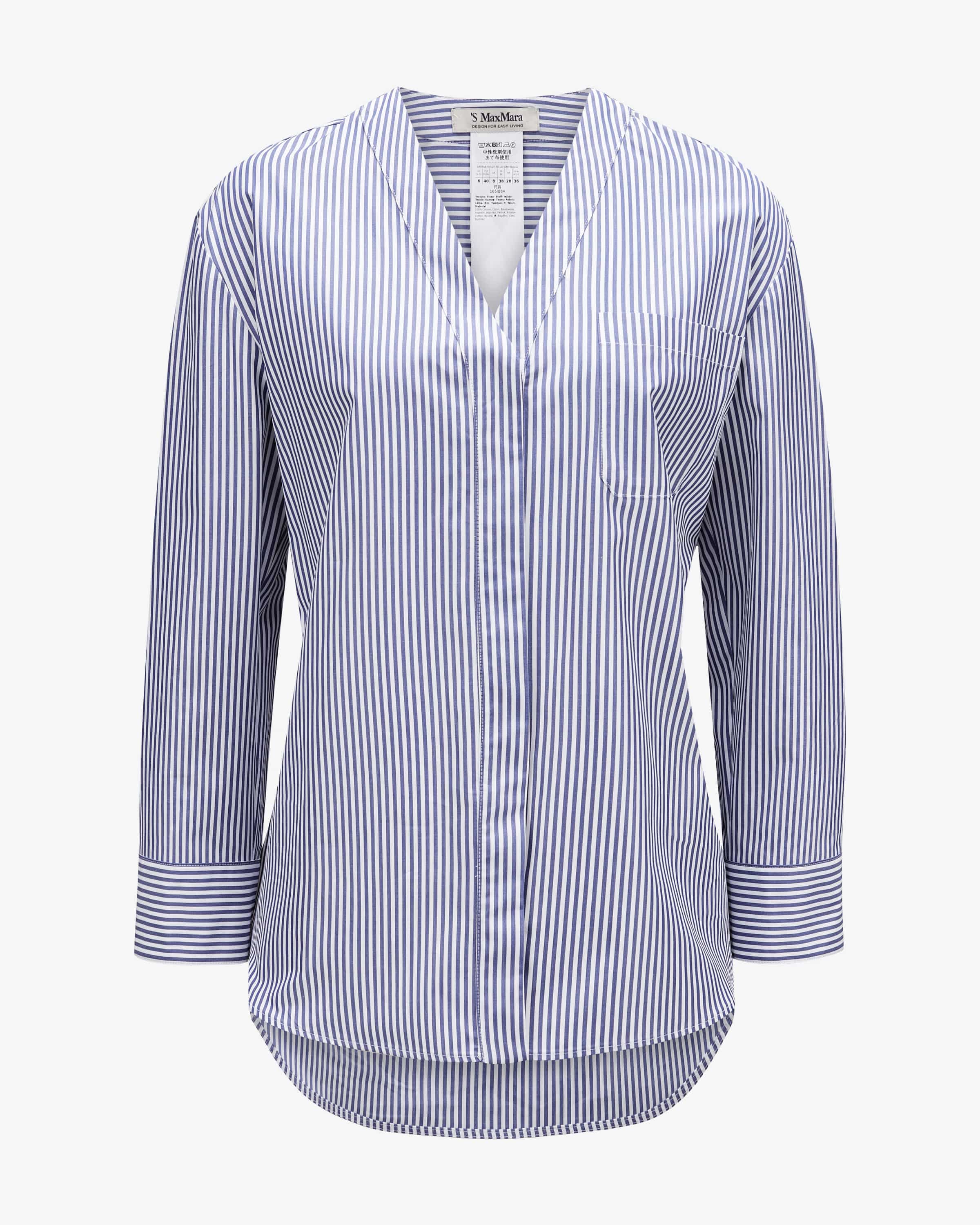 Chicca blouse for women from 'S Max Mara in blue and white. 'S Max Mara is the casual casual-oriented line of the traditional Italian house Max Mara - known for elegant, wearable for elegant, wearable everyday pieces. This model also impresses with its cotton fabric, while the wide silhouette with a maritime stripe pattern creates a maritime stripe pattern creates a fashionable look.