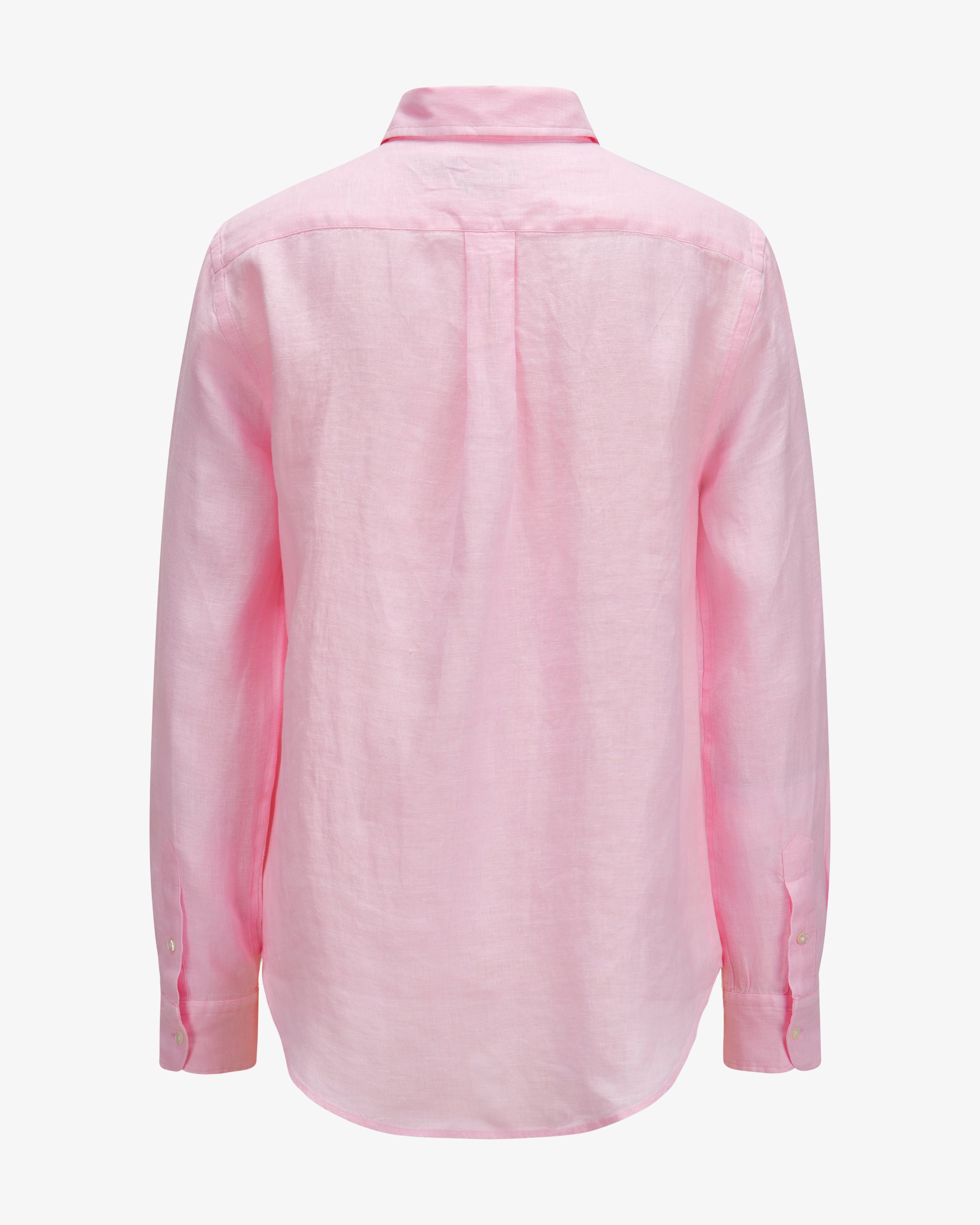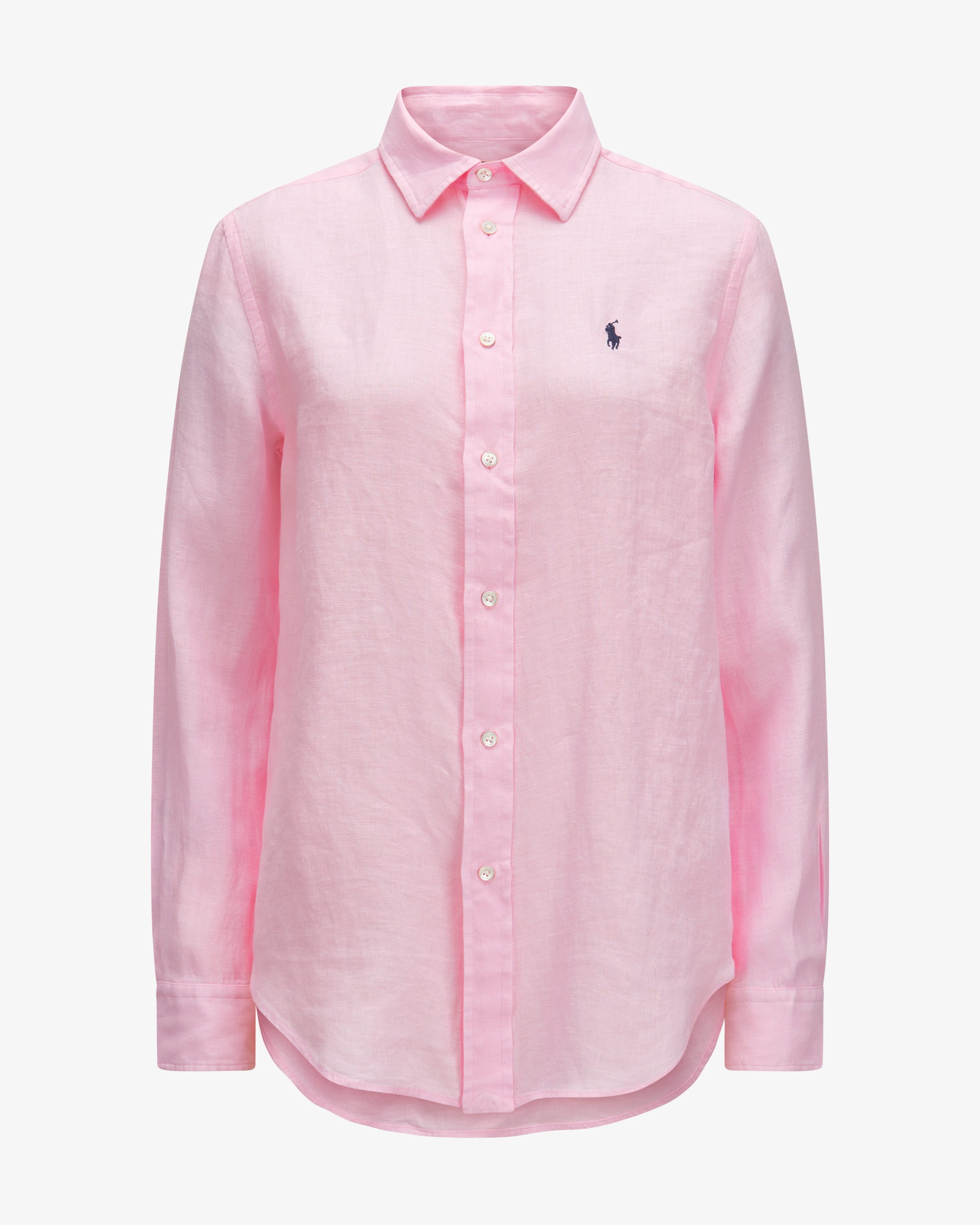 Classic fit shirt blouse for women from Polo Ralph Lauren in pink. The model made from made from comfortable linen fabric is a timeless favorite that is harmoniously rounded off by the harmoniously rounded off by the label-typical polo rider embroidery.