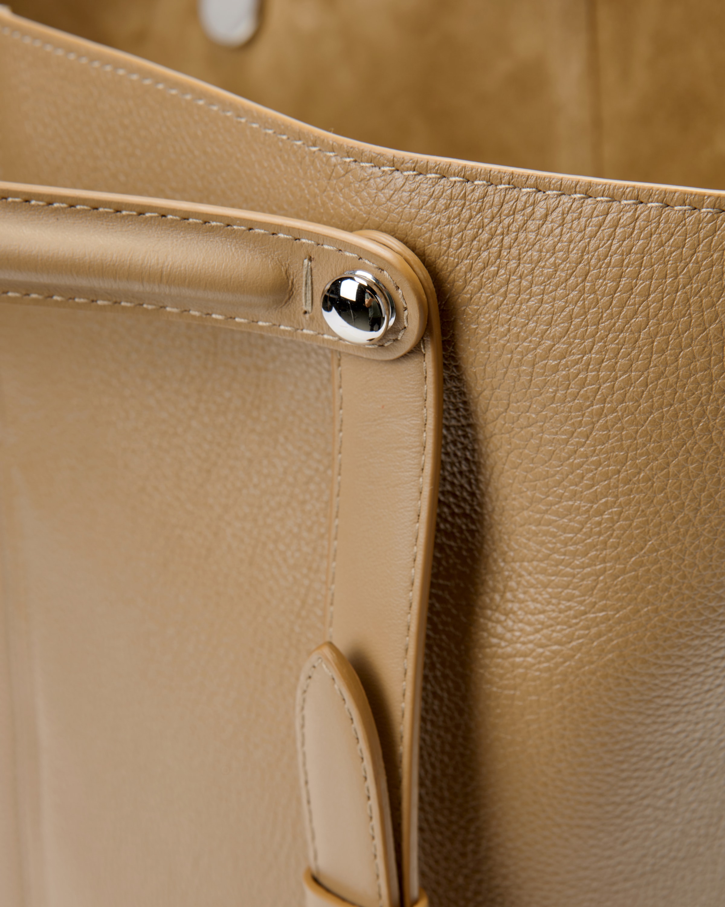 Dress-age Medium handbag for women from Maison Margiela in camel. A combination of unconscious glamor and emblematic design - this equestrian-inspired inspired by equestrian sports thanks to its grained leather and trapezoidal silhouette with contrasting shoulder straps that can be styled in two ways, as a special companion with typical label charm.