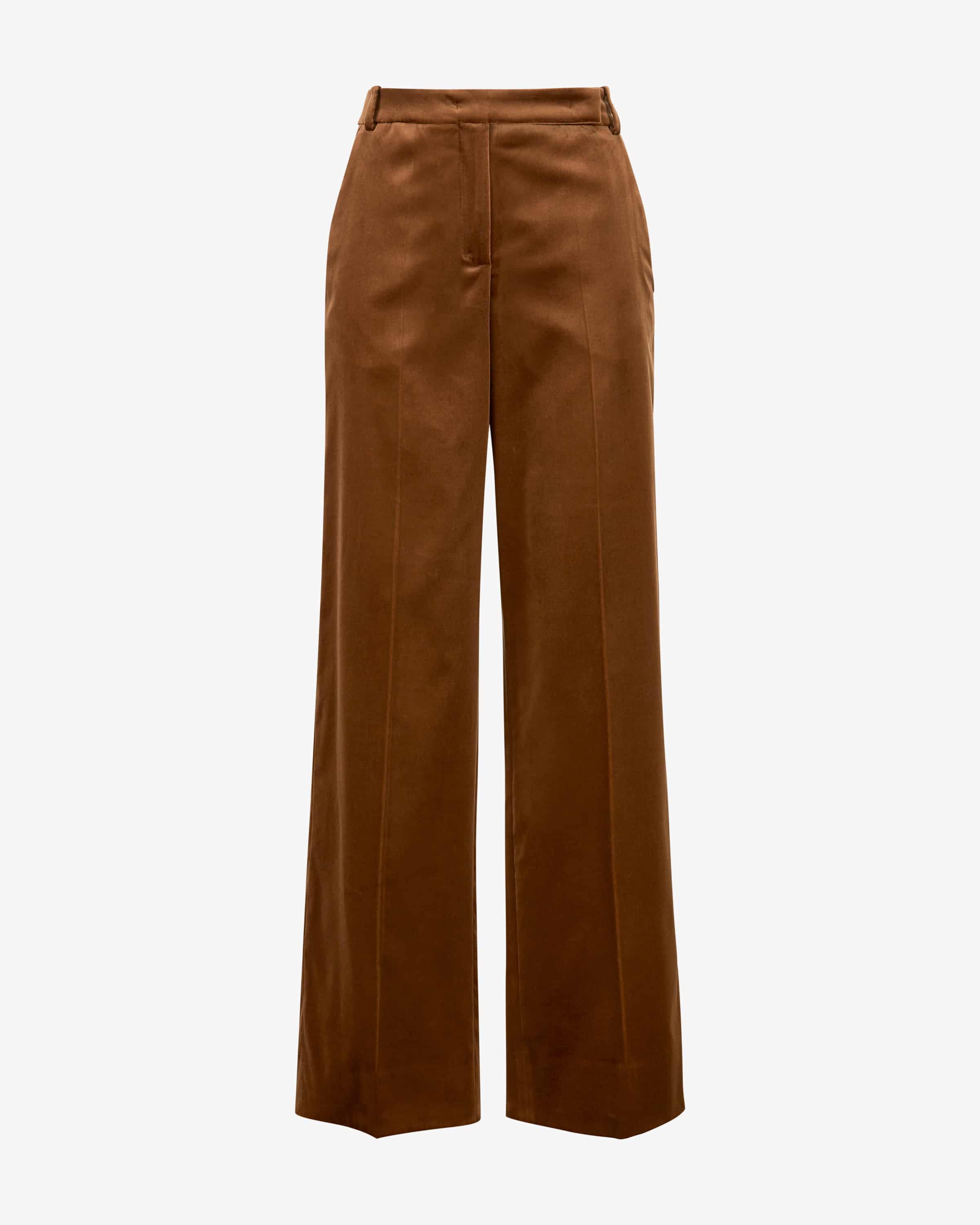 Elegance Softness velvet trousers for women from Dorothee Schumacher in caramel. Feminine power from Germany - Dorothee's looks combine strength with playful elegance. While the flared fit and classic details create a feminine, elegant look, the stretch velvet ensures a high level of comfort. wearing comfort. The style can also be worn with the matching blazer as an elegant be worn with the matching blazer.