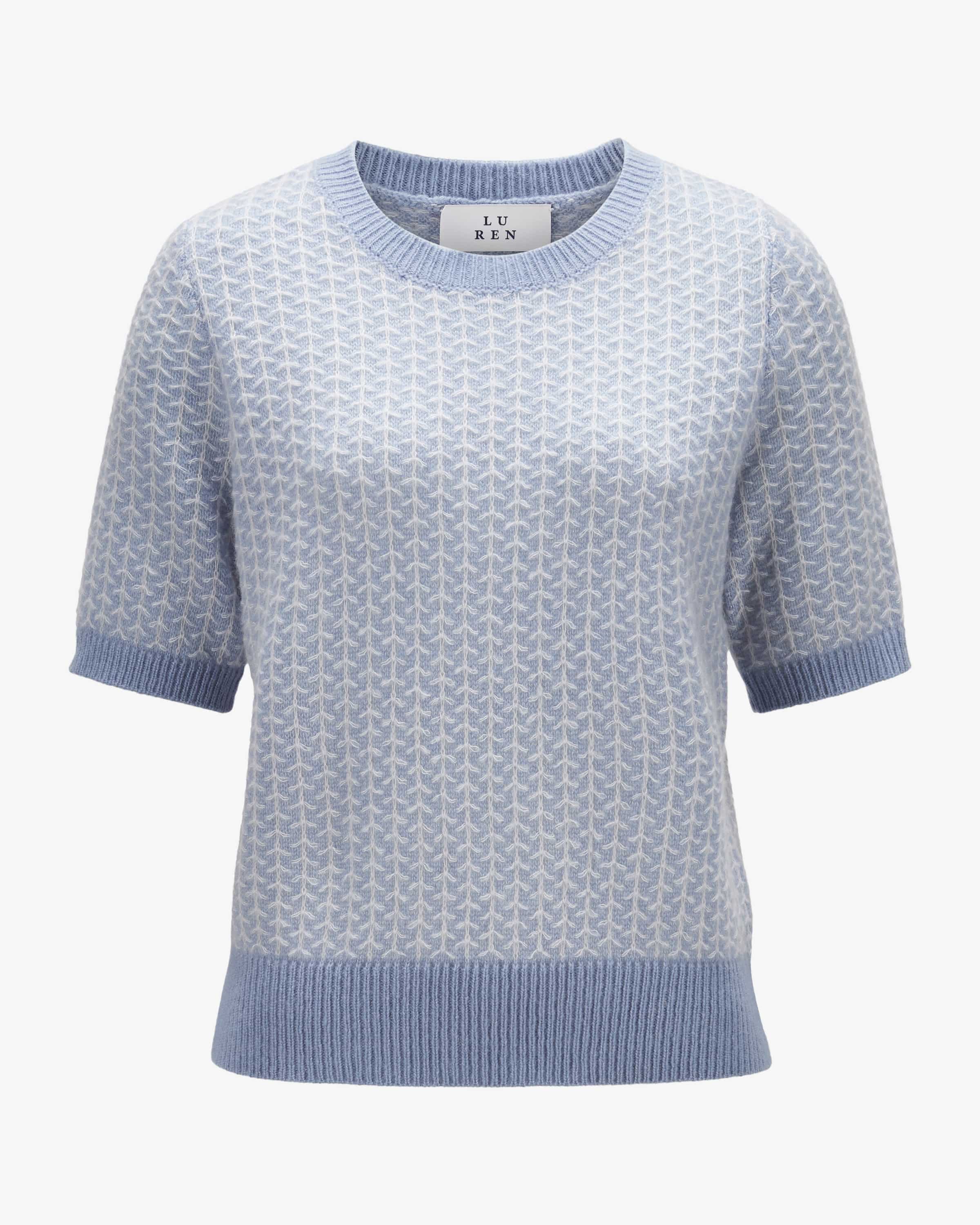 Enoki knitted shirt for women by Lu Ren in Sky Blue and Bluish White. The