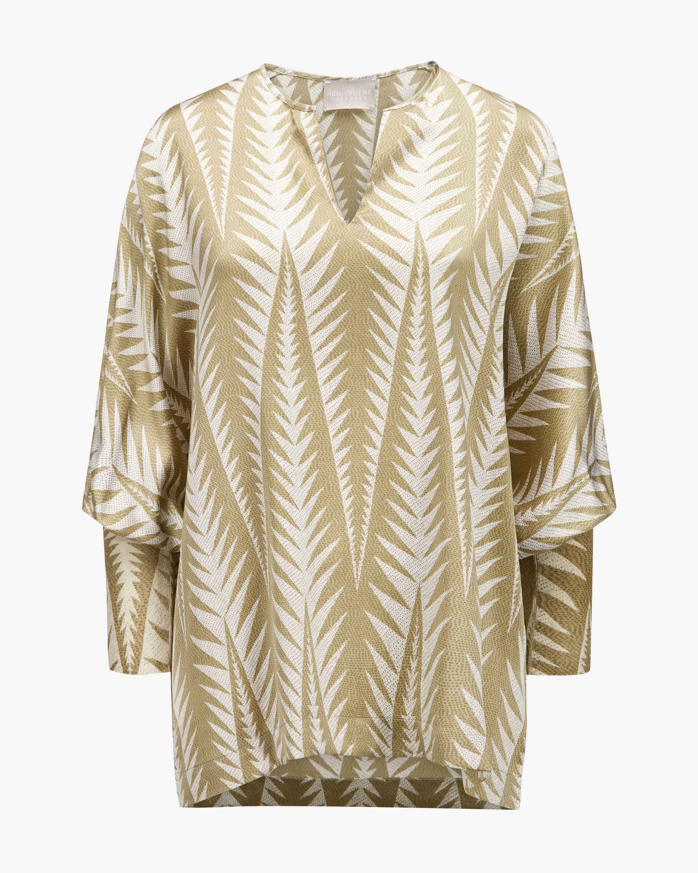 Farata silk tunic for women from Hemisphere in khaki and cream. The German