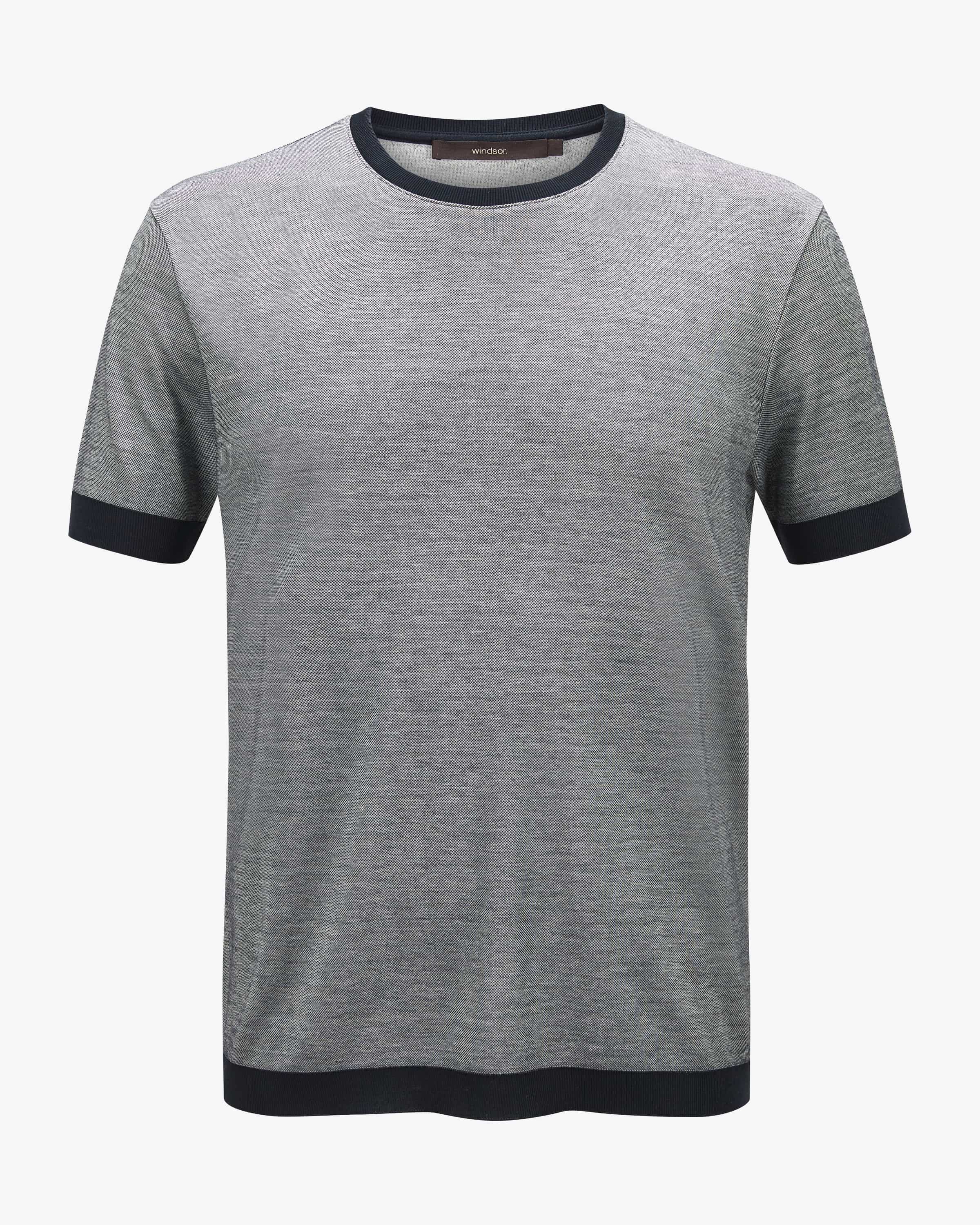 Florito T-shirt for men from Windsor in navy and cream. Made from soft cotton cotton fabrication impresses with its fashionable piqué quality and is skilfully skilfully finished with ribbed knit details.
