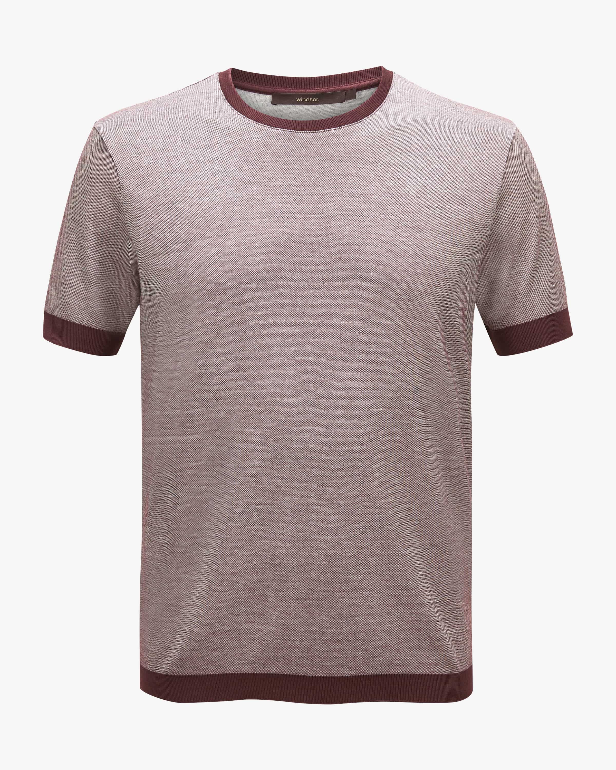 Florito T-shirt for men from Windsor in Bordeaux. This model made from soft cotton fabrication impresses with its fashionable piqué quality and is skilfully skilfully finished with ribbed knit details.