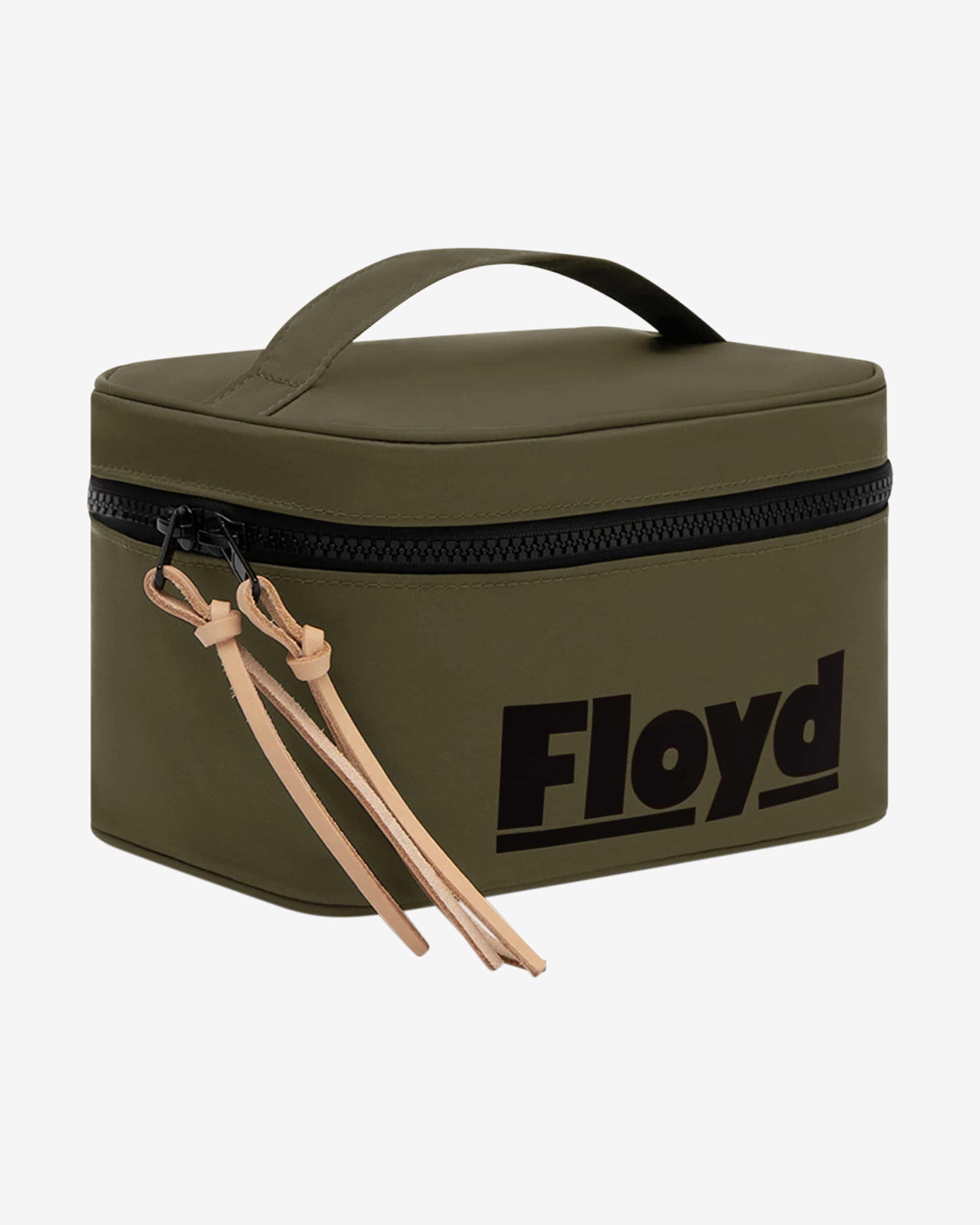 Floyd Travel Kit toiletry bag from Floyd in olive. The model offers enough storage space for your toiletries and cosmetics, making it a practical practical essential for traveling or at home. The contrasting inner lining and the logo lettering add a fashionable finishing touch to the overall look.
