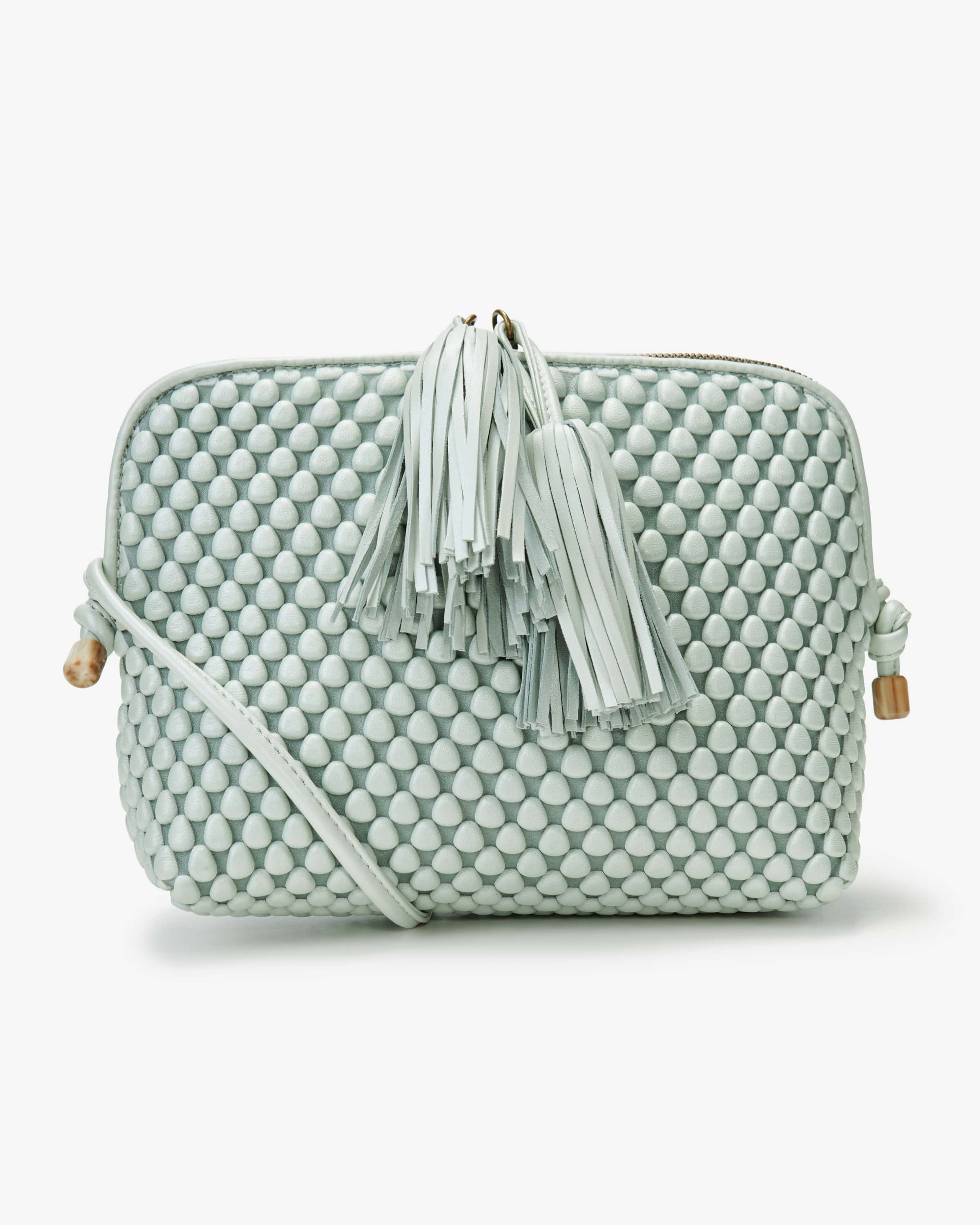 Gizmo shoulder bag for women from Tissa Fontaneda in turquoise. Founded in 2010, the label combines craftsmanship and attention to detail. The instantly recognizable "Bubble Bag" has become the trademark of the Tissa Fontaneda collection. This This model also impresses with its characteristic design with a structured and a subtle metallic finish, while the tassel application adds the finishing touch. the finishing touch.