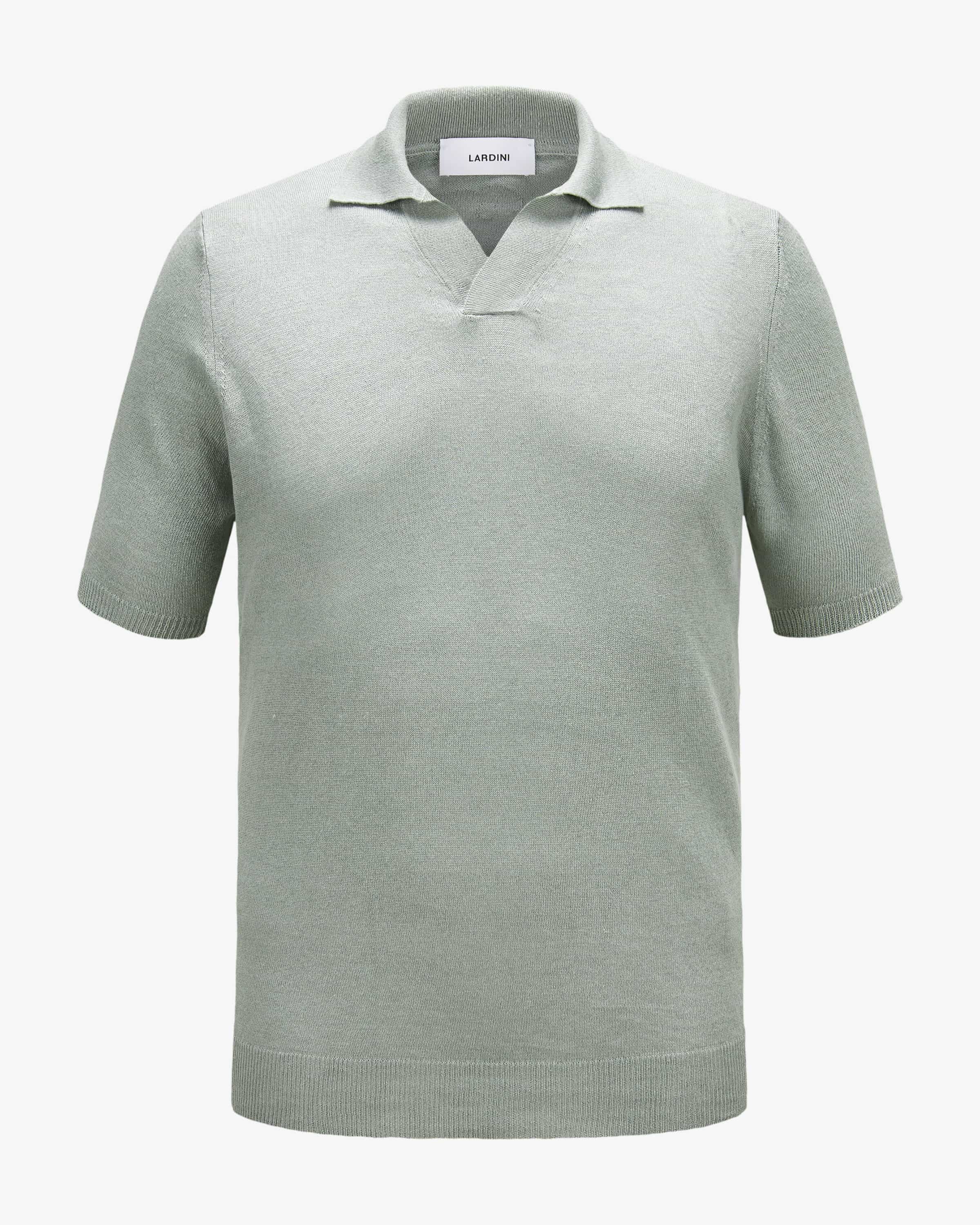 Knitted polo for men from Lardini in sage. The fine knit pattern and the simple simple design create a versatile everyday companion with a sense of style, while the style, while the high-quality linen-cotton blend promises a pleasant feel and breathability. and breathability.