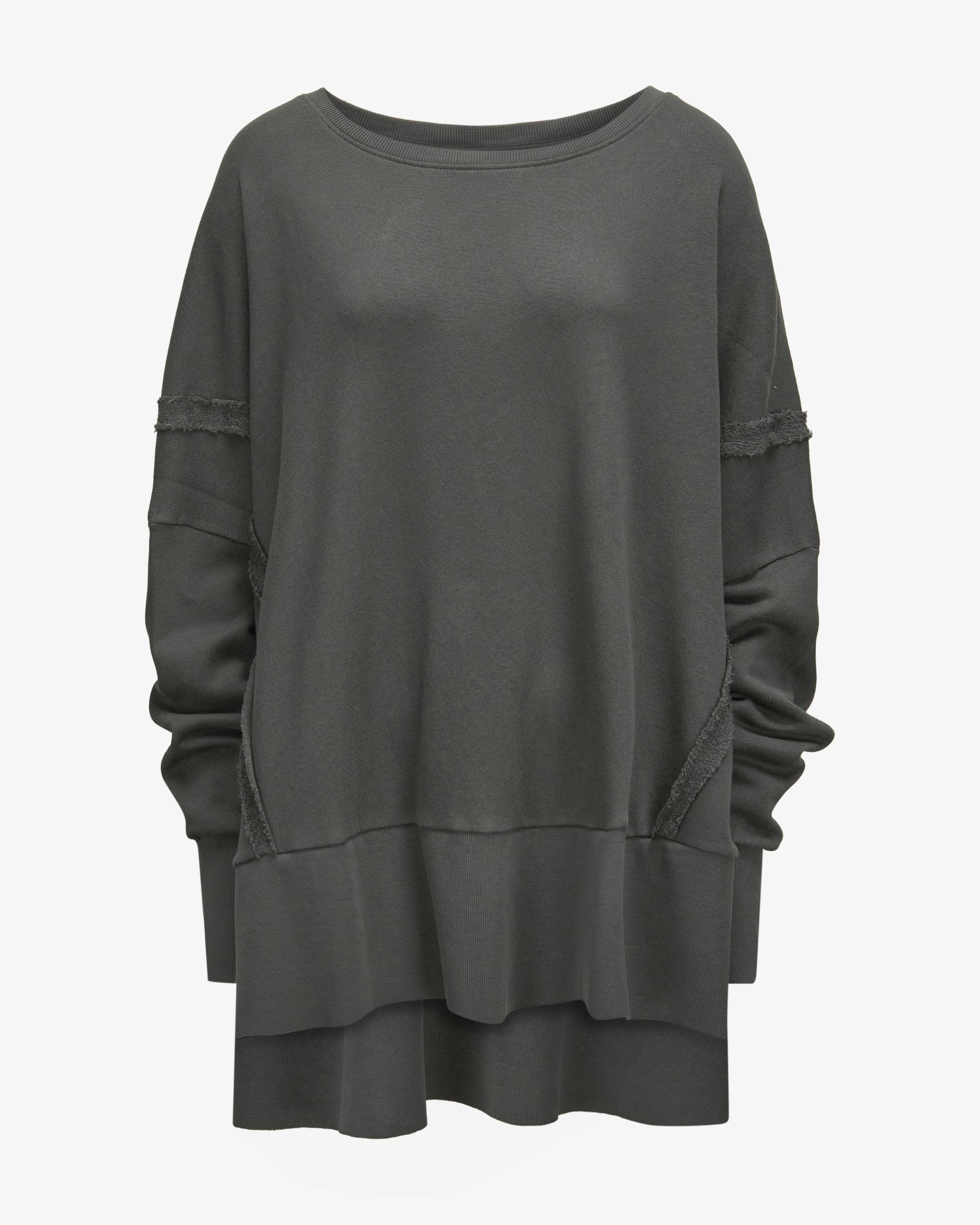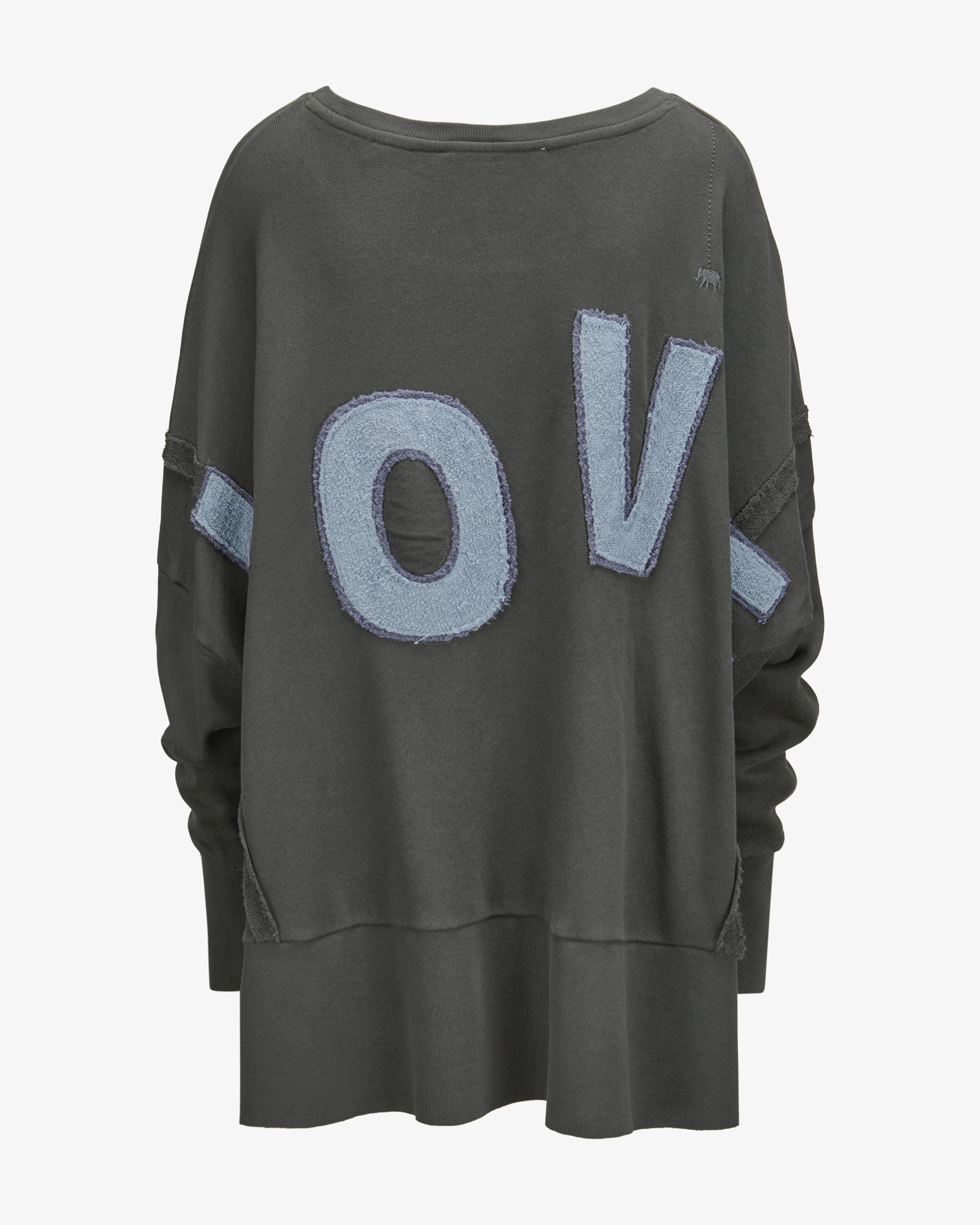Kriz sweatshirt for women from Love Joy Victory in dark gray. The sustainable label skilfully proves with this model how fashionable fair fashion can look. Thanks to the casual cut, this sweatshirt has a sporty look, while details in terrycloth fabric add modern accents.