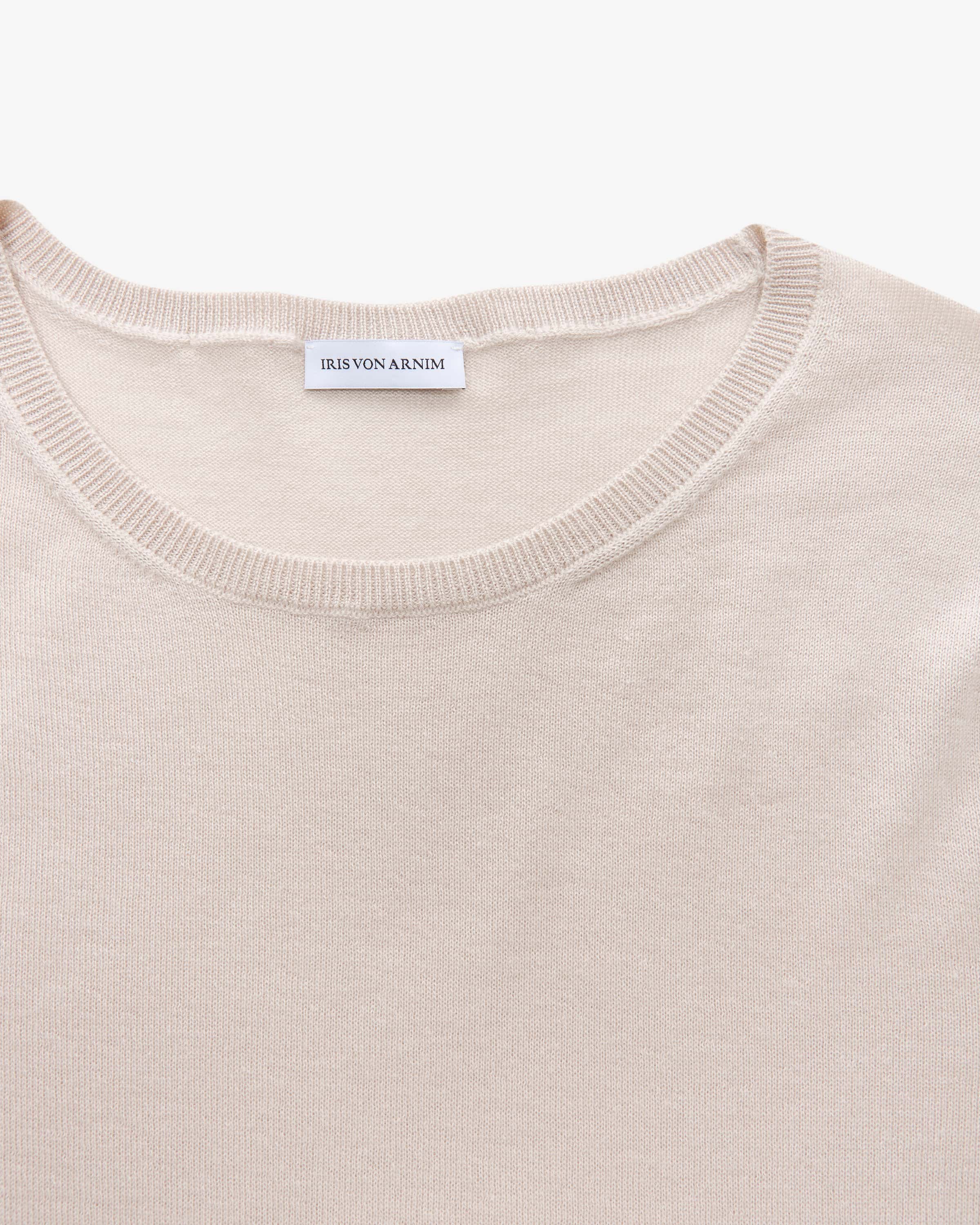 Lily cashmere silk knit shirt for women from Iris von Arnim in alabaster. The Hamburg-based brand is an icon of cashmere craftsmanship - founded by Iris von Arnim and is known for the highest quality and elegant designs. This lightweight model also impresses with its high-quality cashmere-silk fabric in a fine knit. workmanship. The simple silhouette can be combined in a variety of ways and is a a favorite for timeless looks.