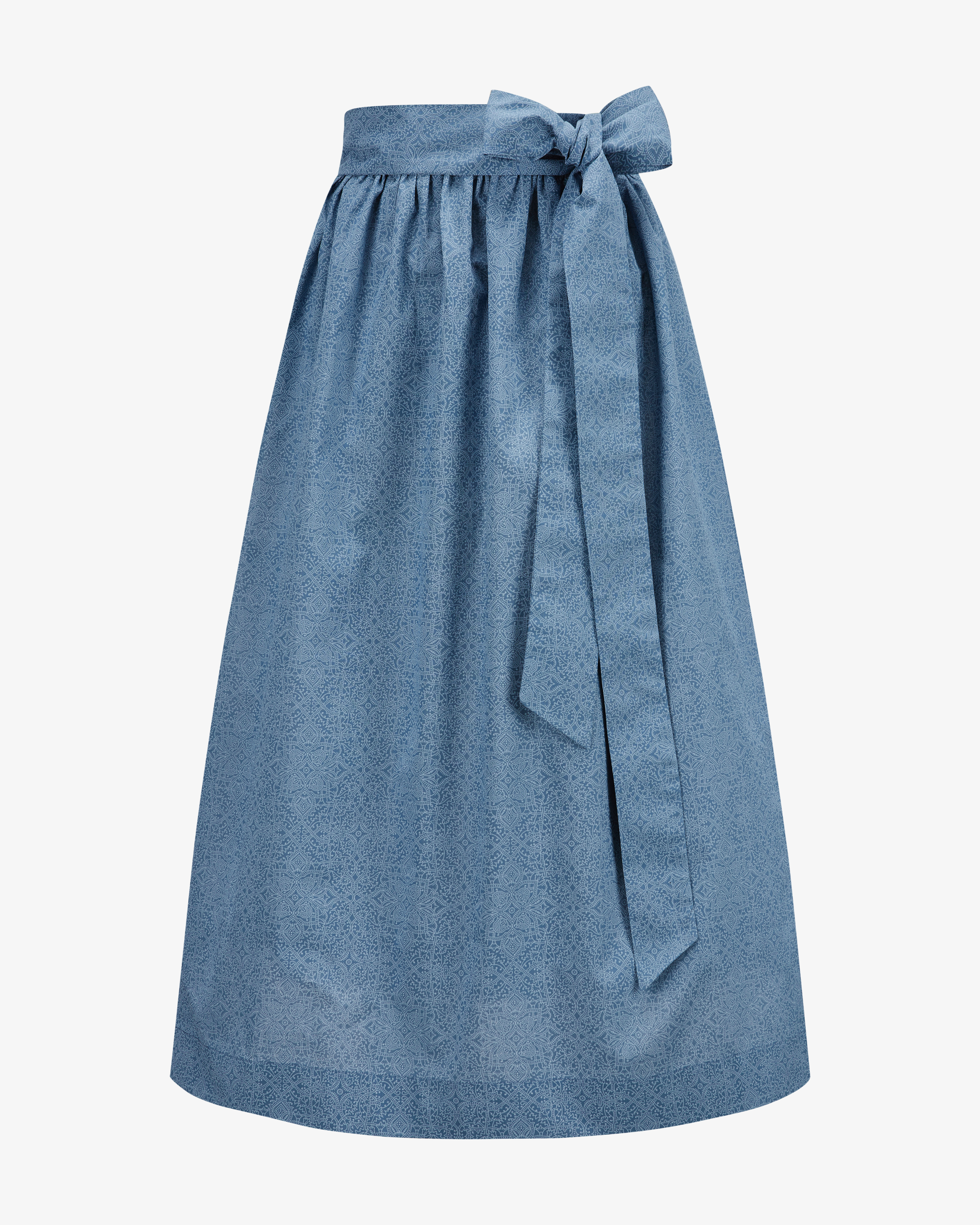 Long dirndl apron for women from LODENFREY in dove blue. The model presents itself with light cotton quality and a fine ornamental pattern - a feminine feminine companion for versatile traditional looks.