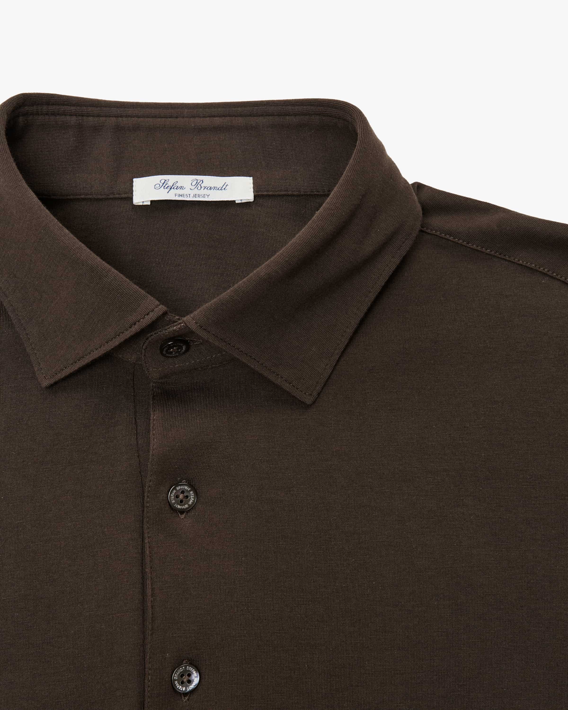 Luca polo shirt for men from Stefan Brandt in Dark Chocolate. German luxury luxury label for purist jersey and knitwear fashion - precise craftsmanship, uncompromisingly elegant. Thanks to the soft cotton quality, this model is a comfortable companion for sporty looks, while the polo collar adds sets masculine accents.