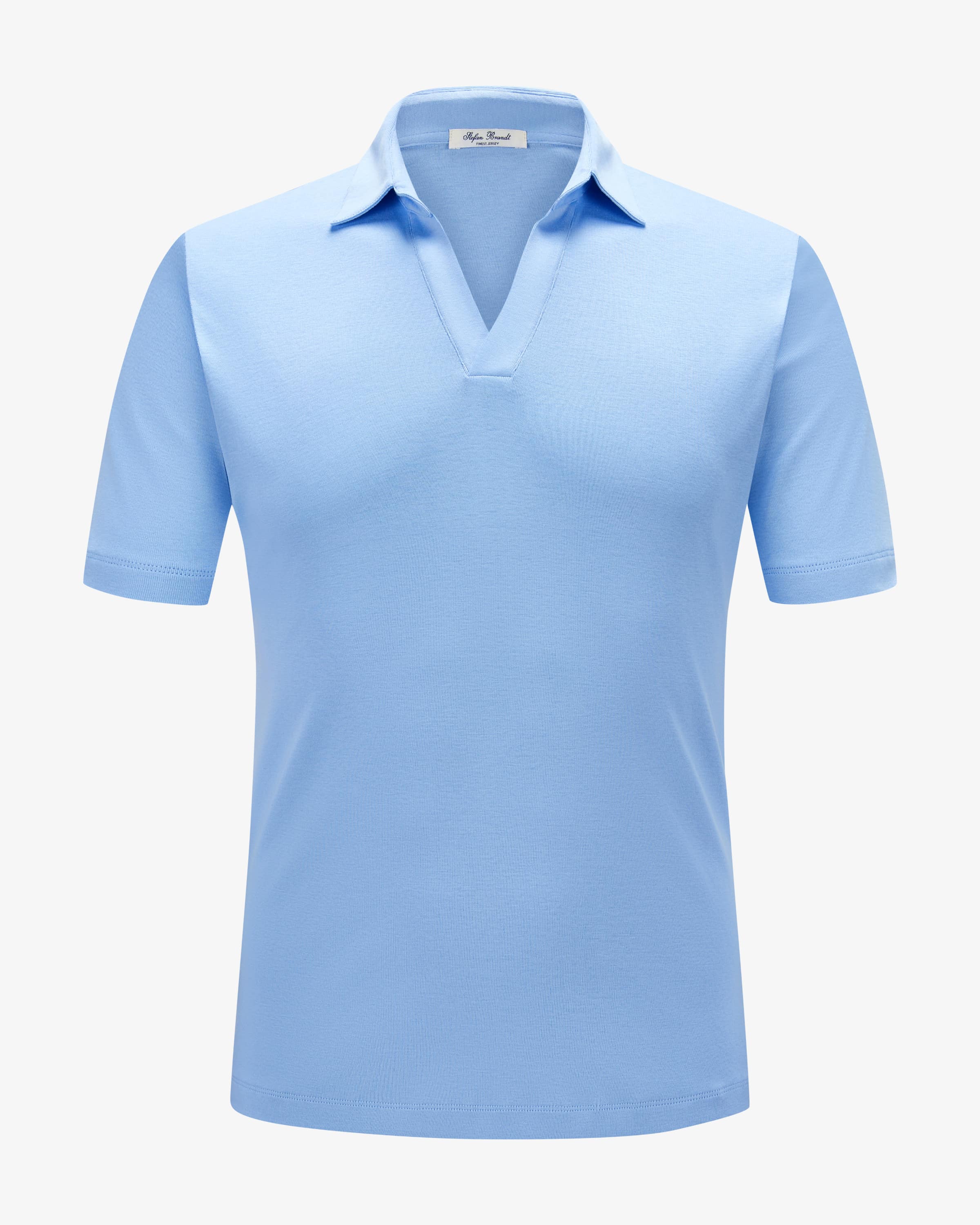 Lucio polo shirt for men from Stefan Brandt in azure. The German luxury label produces purist jersey and knitwear fashion - with precise craftsmanship, uncompromisingly elegant. Thanks to the super-soft, finely knitted jersey fabric made from high-quality Urpima Sea Island cotton, this style is a comfortable a comfortable companion with a sporty touch, while the varsity collar adds a masculine accents.