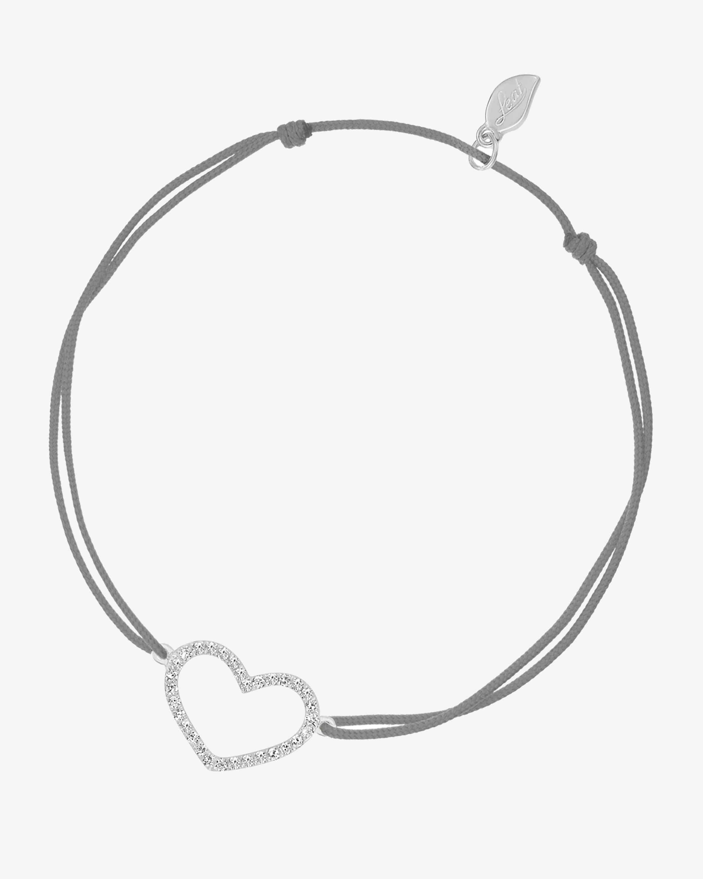 Lucky heart diamond bracelet for women from Leaf in gray and silver. Leaf is a German German fine jewelry label that combines filigree jewelry with modern aesthetics designed in Hamburg. The adjustable bracelet made from high-quality white gold is a delicate piece of jewelry that radiates love and positive energy. radiates love and positive energy. Thanks to the precious diamonds, it becomes a luxurious highlight highlight that is perfect for stylish looks.