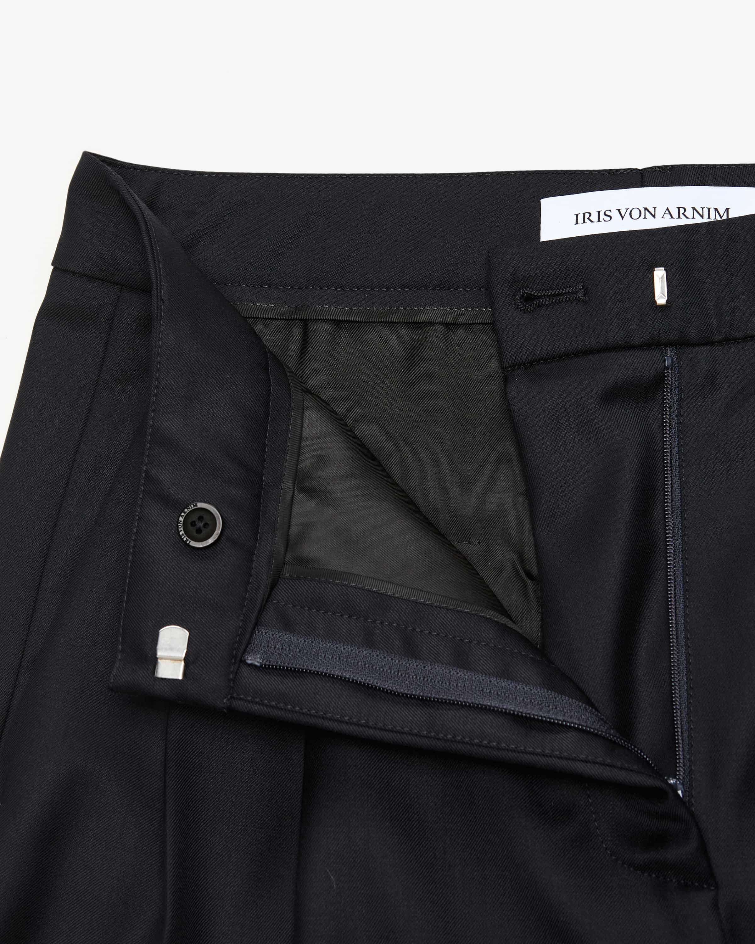 Lupina trousers for women from Iris von Arnim in navy. The Hamburg brand is an icon of cashmere craftsmanship - founded by Iris von Arnim and known for top quality and elegant highest quality and elegant designs. This model made from flowing wool also becomes a timeless favorite with a soft feel thanks to its wide cut. soft feel. Classic details and striking pleats skilfully round off the clean business look.