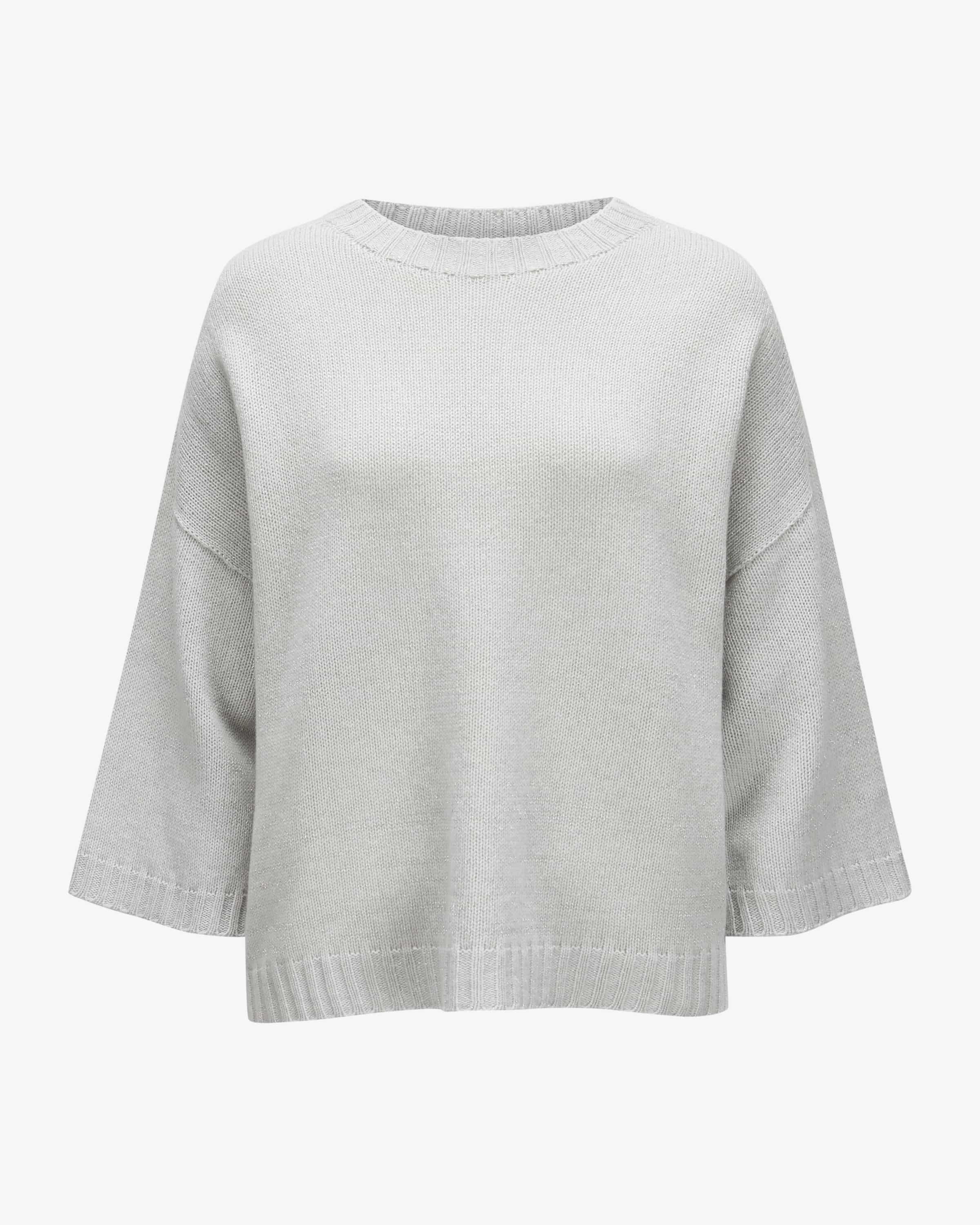 Sweater for women from Fabiana Filippi in silver. The Italian brand stands for for modern elegance, high-quality materials and subtle colors. While the oversized cut and the high-quality merino wool and silk blend ensure a high level of comfort comfort and a casual character, the metallic glitter fibers add a stylish metallic glitter fibers add stylish accents.