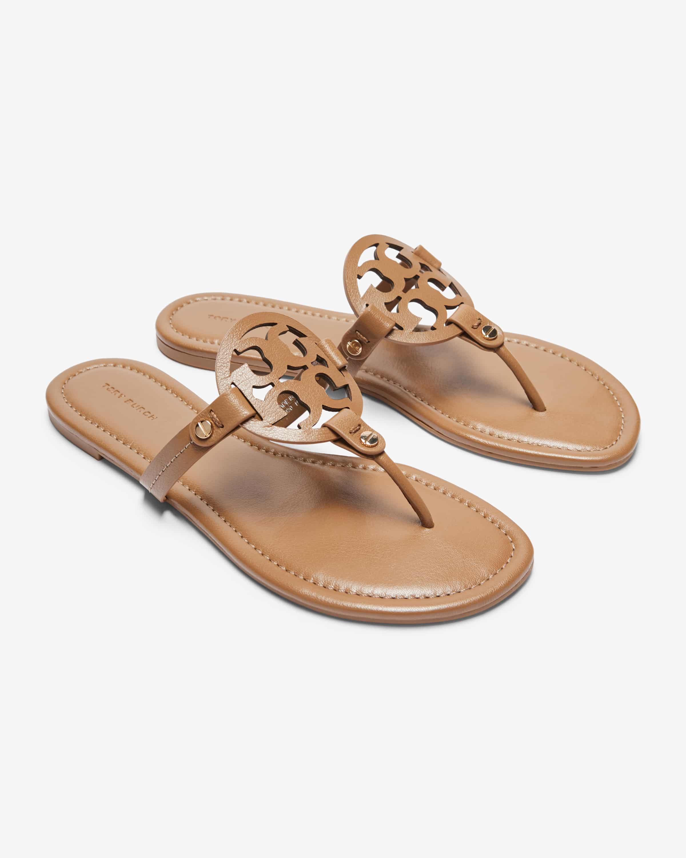 Miller toe separators for women from Tory Burch in brown. Thanks to the high-quality leather quality in a smooth finish creates a sophisticated, timeless look, while the striking logo detail sets special accents.