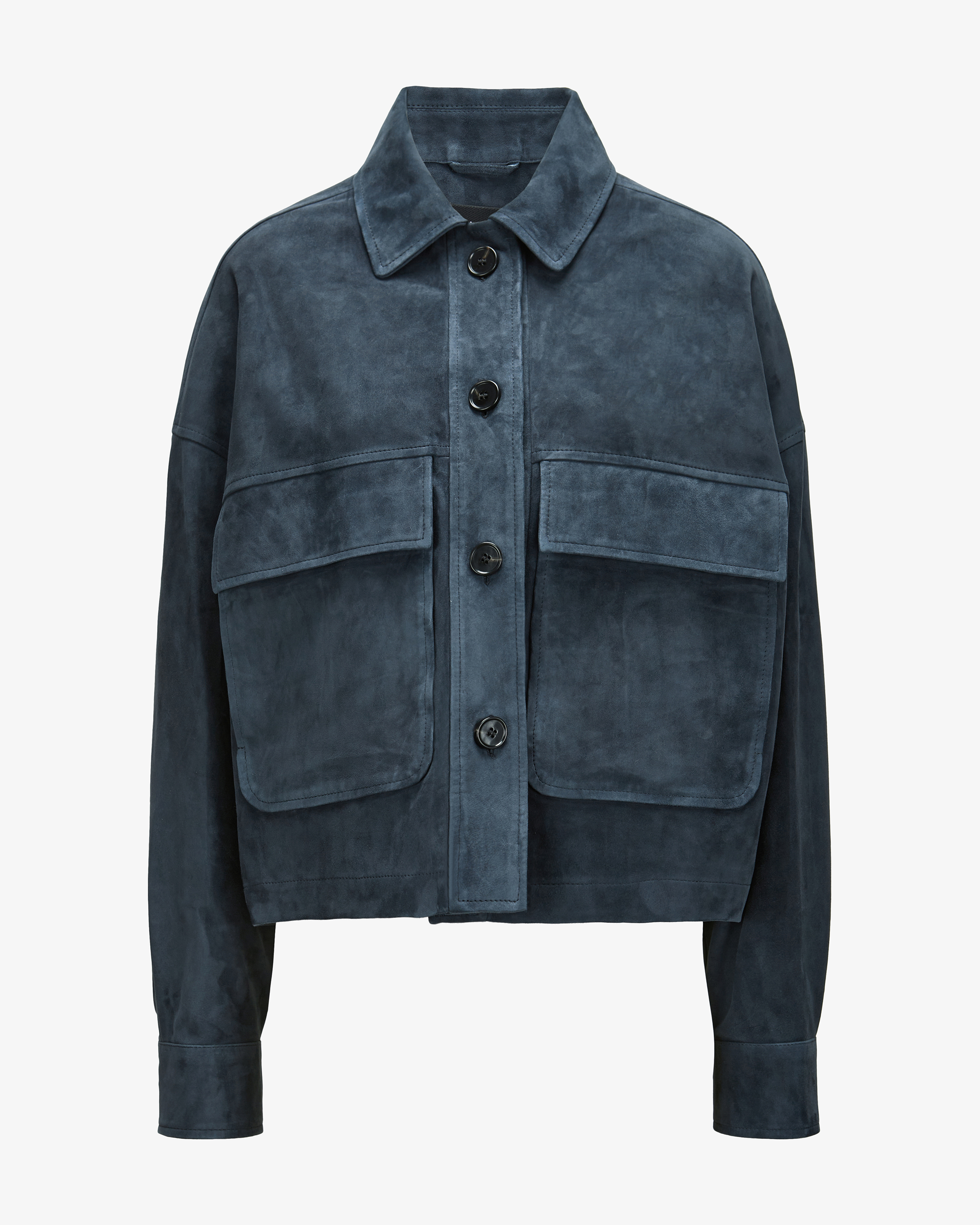 Miri leather jacket for women from Arma in navy. Founded in Amsterdam in 1985, Arma Arma stands for fine leather and lambskin fashion with a clear design language. The unlined model impresses with the use of high-quality lambskin suede, which not only not only promises a soft feel, but also creates an elegant overall look. creates a sophisticated overall look. At the same time, the jacket's fashionable shirt design in a casual oversized silhouette makes it a trendy everyday favorite.