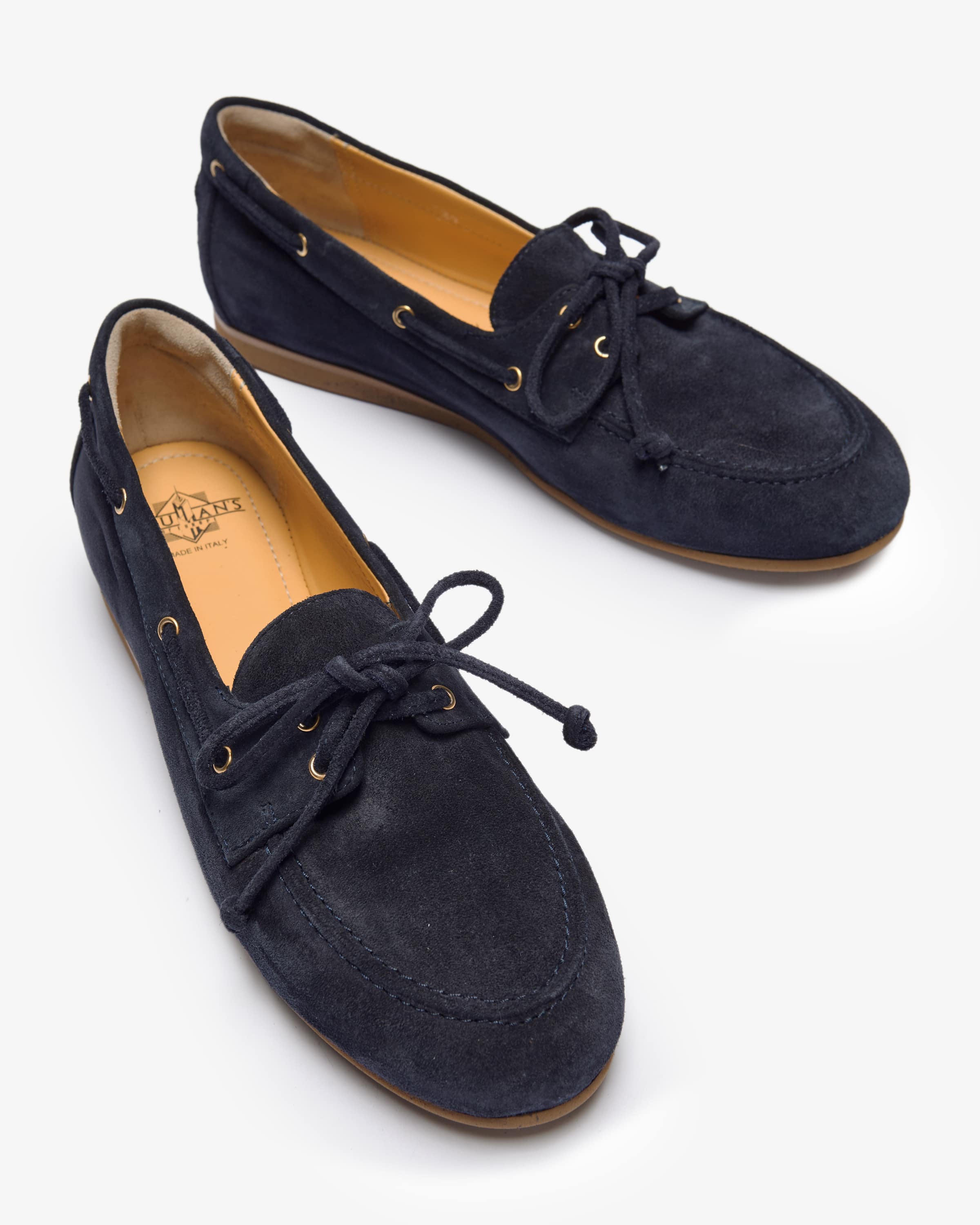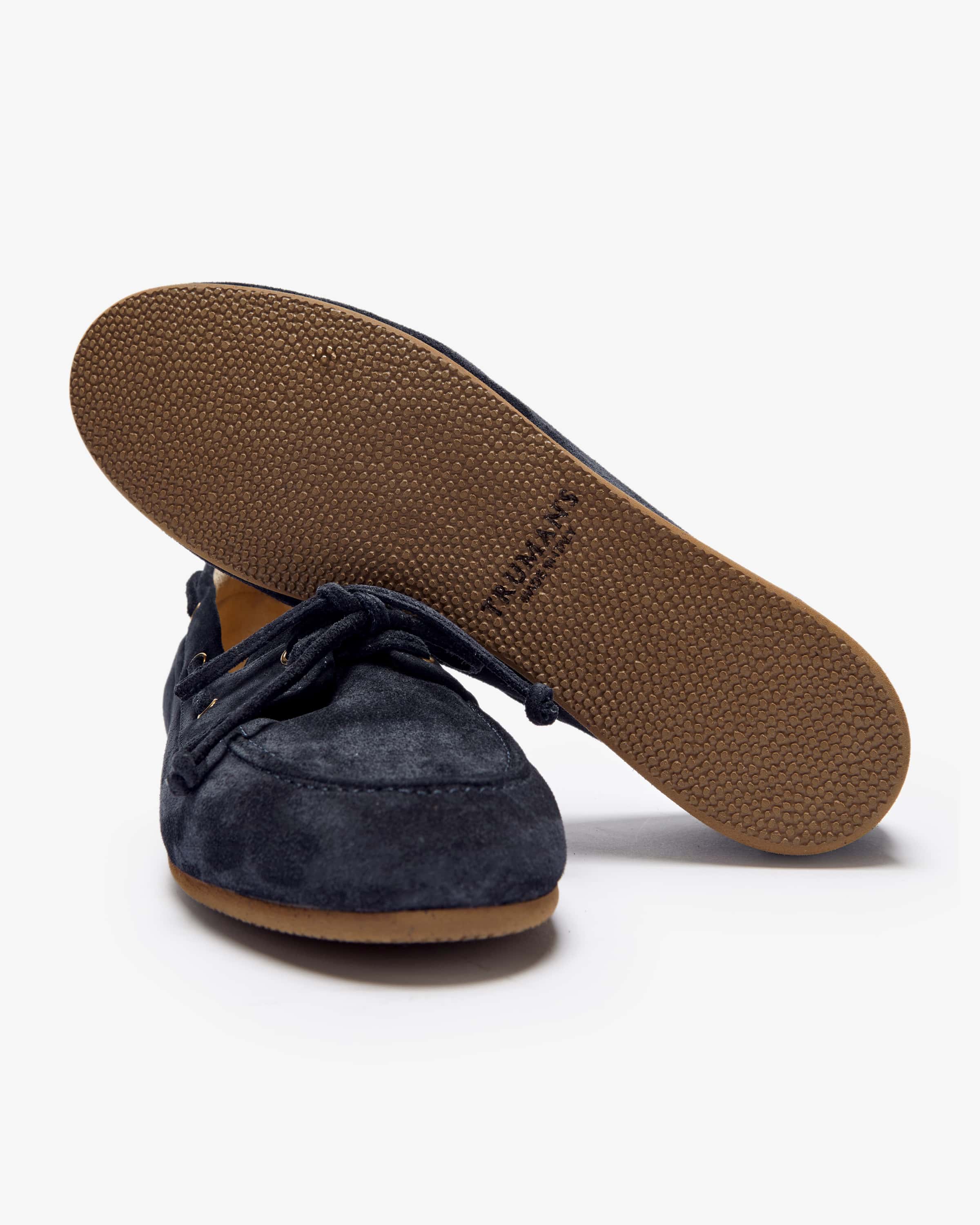 Moccasins for women by Trumans in navy. Thanks to the high-quality the high-quality suede fabric in combination with the eyelet lacing on the side as a stylish favorite with a maritime boat shoe character.