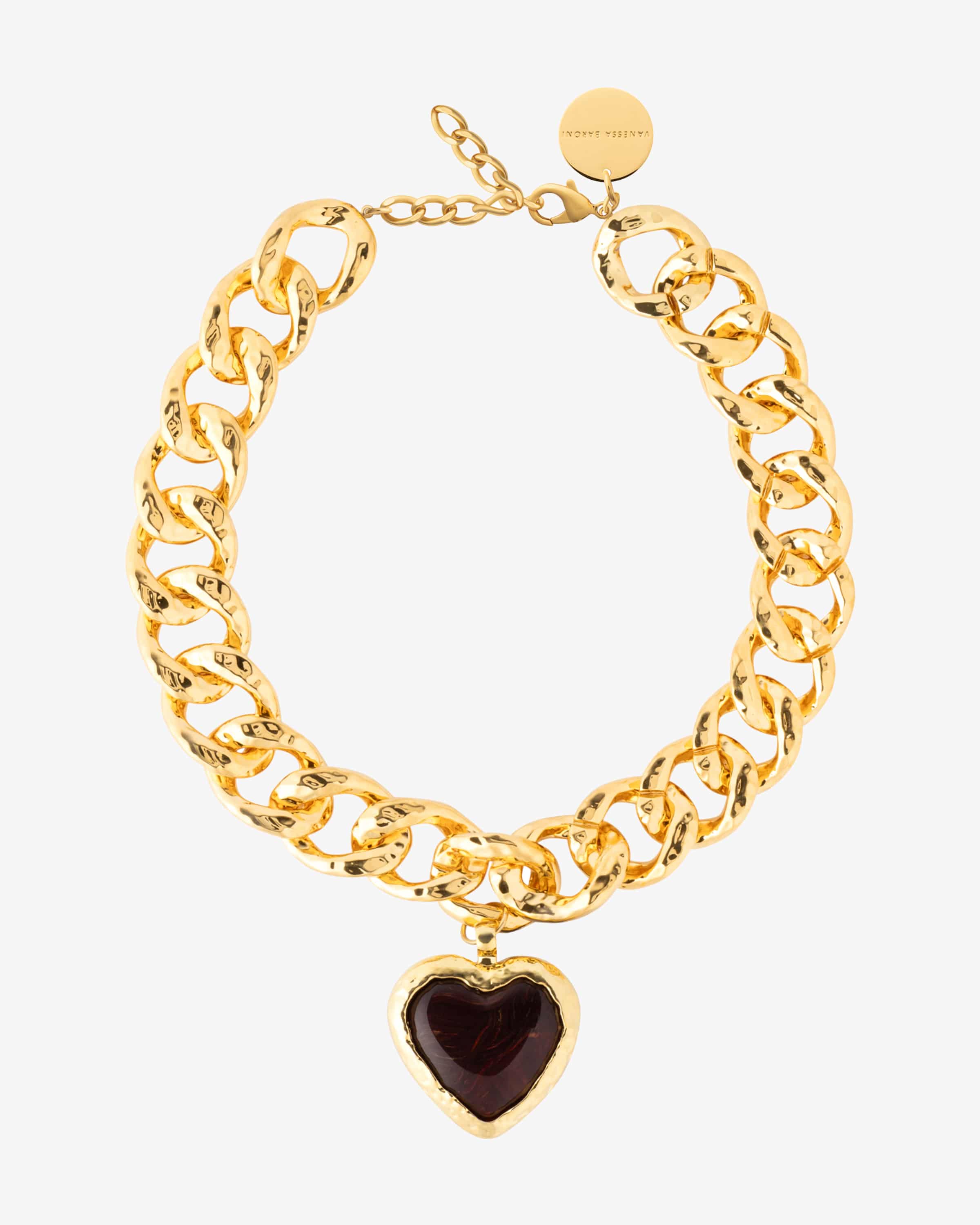 Big Hammered with Heart necklace for women from Vanessa Baroni in gold and