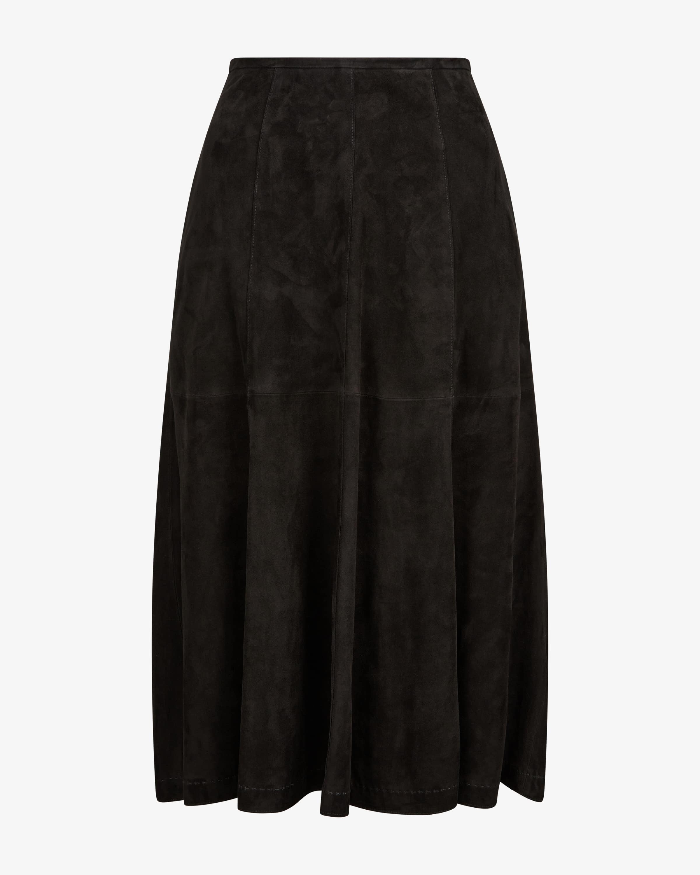 Odila traditional leather skirt for women from Habsburg in black. This model stands out thanks to the high-quality lambskin leather finish in iridescent suede. The flared fit with subtle dividing seams rounds off the feminine traditional look. look.