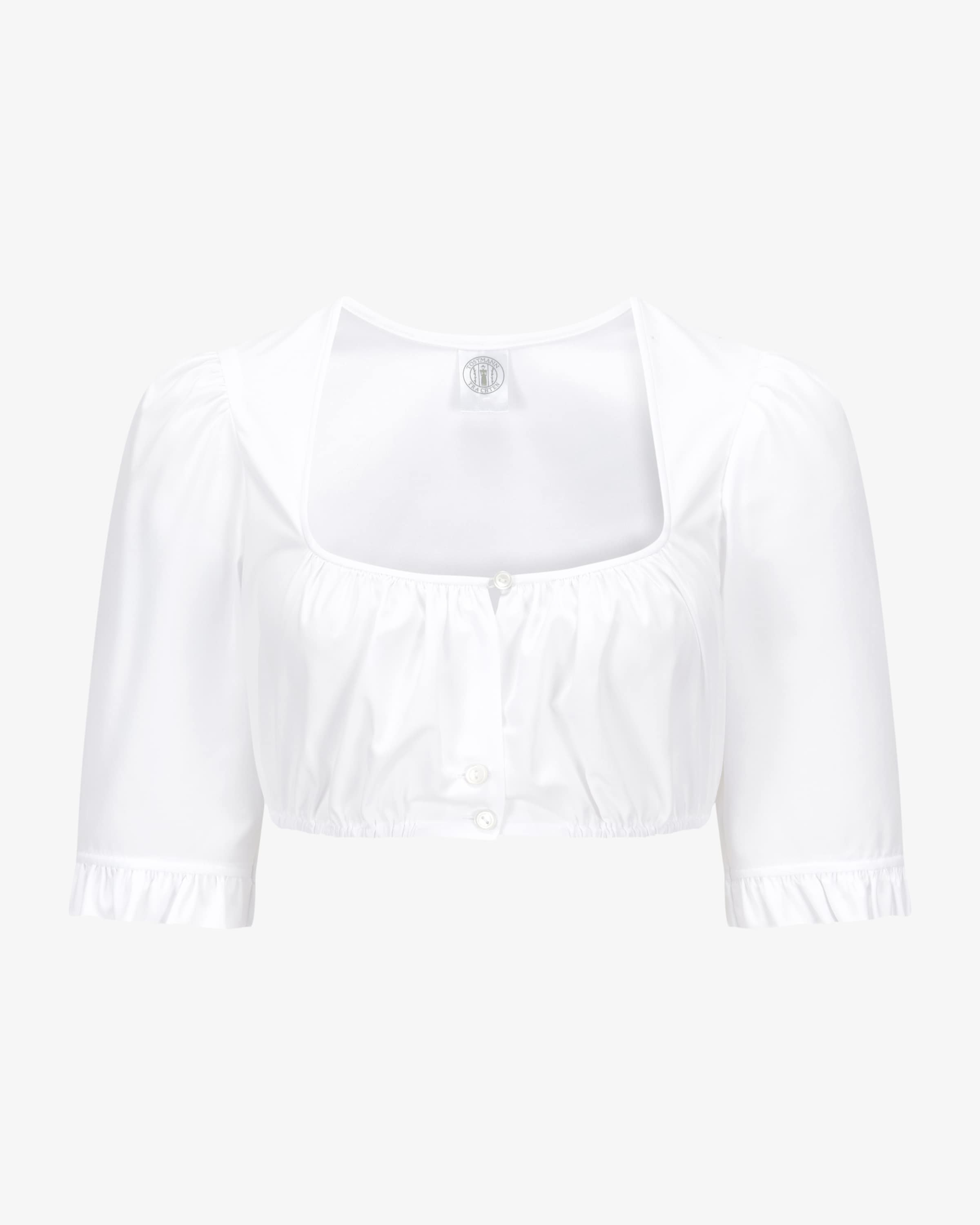 Ödensee dirndl blouse for women by Trostmann in white. Made in Austria - thanks to the cotton quality, this model, which is made in Austria, impresses with its with special feminine frill accents and create a sophisticated traditional look. look.