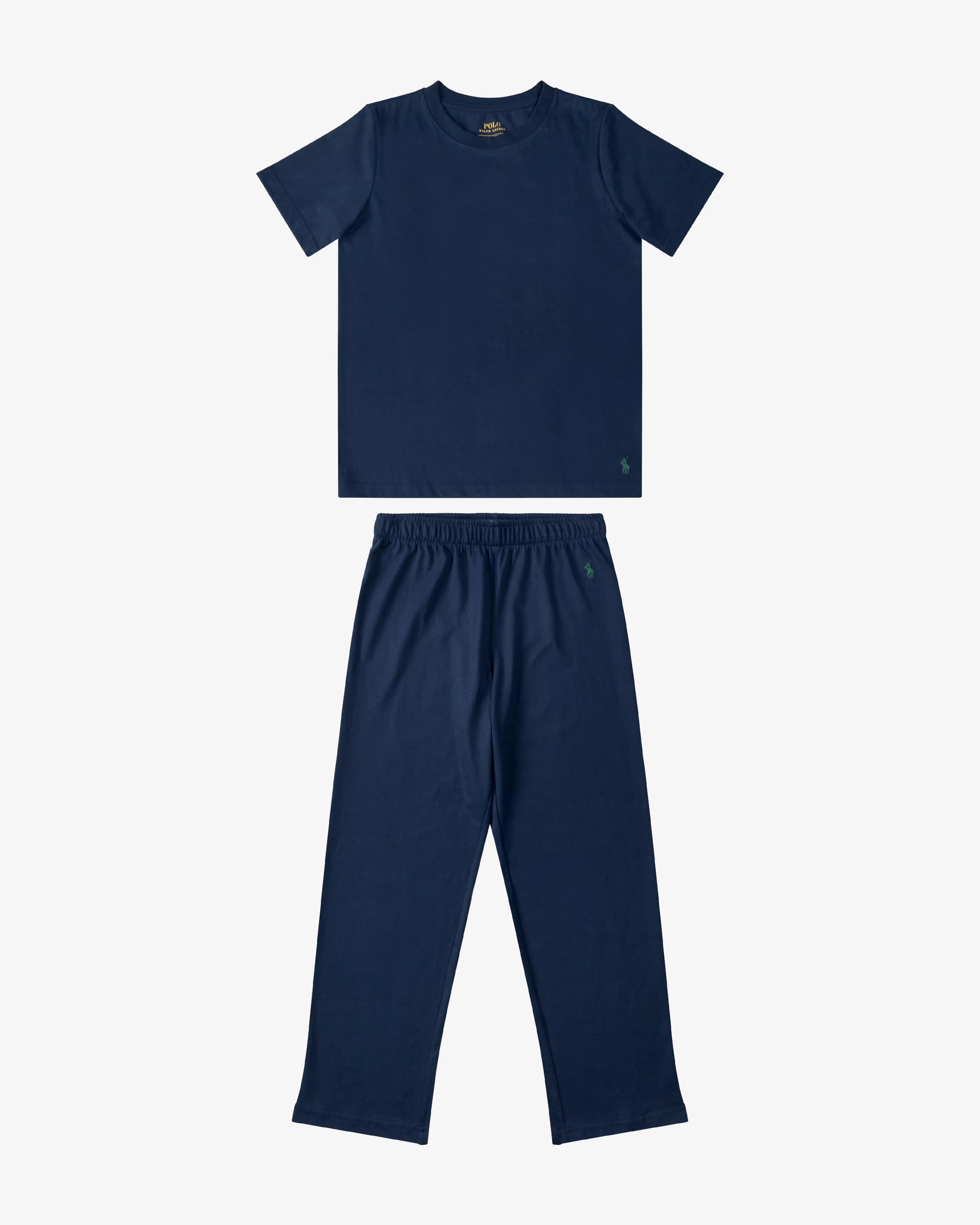Pajamas for boys from Polo Ralph Lauren in dark blue. The model impresses cotton fabric makes them comfortable to wear, while the embroidery the label's signature polo rider embroidery creates a stylish overall look.