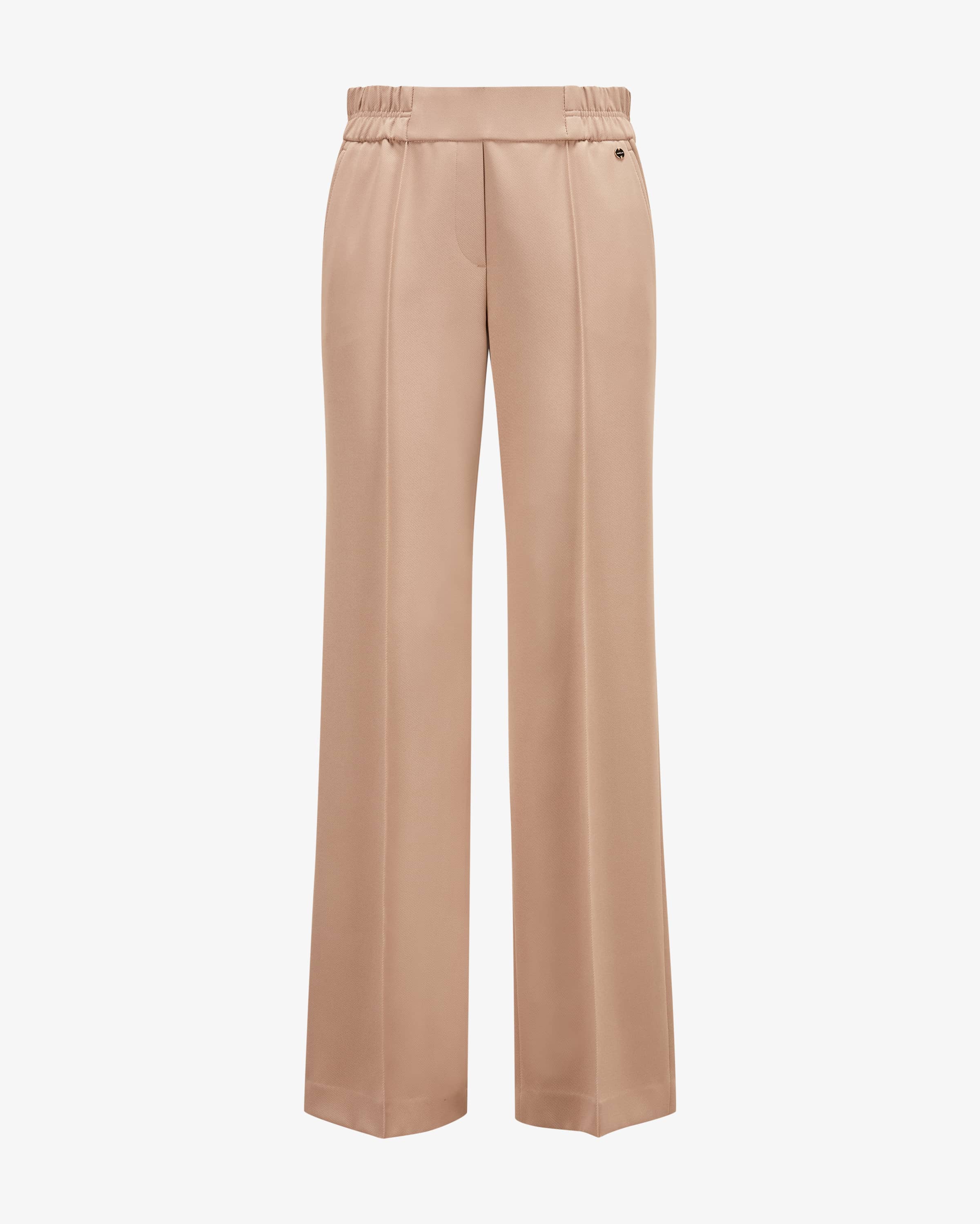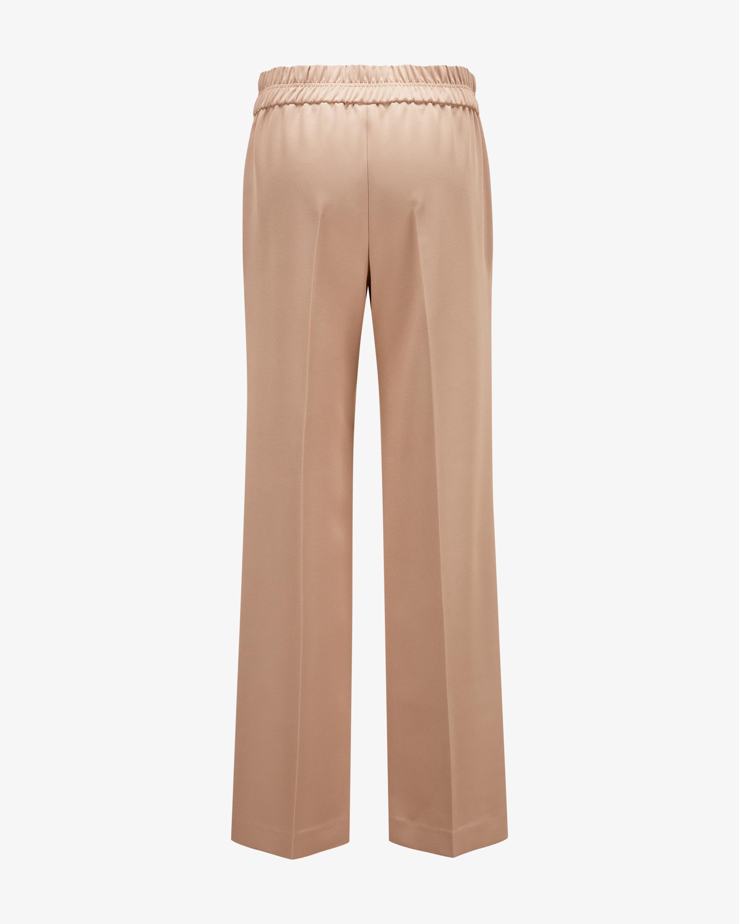 Washington Regular Waist Wide Fit trousers for women from Marc Cain in taupe. The German brand stands for confident, feminine looks. This model with wide leg and partially elasticated waistband features sewn-in creases and flowing material pleats and flowing material, creating a stylish look.