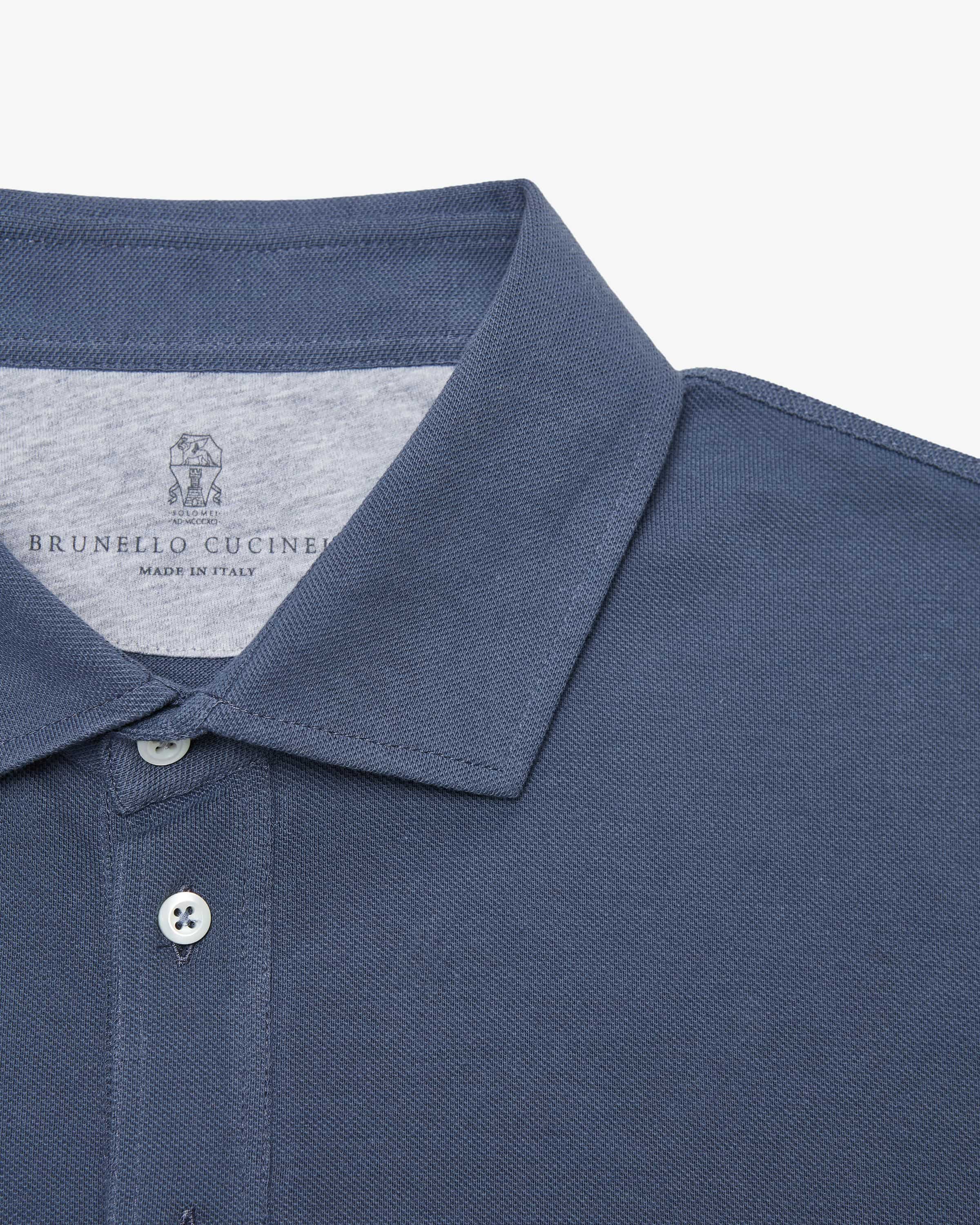 Polo shirt for men from Brunello Cucinelli in blue-grey. The model made from comfortable cotton piqué fabric with a soft feel, while the polo shirt polo shirt design with a short button placket creates a timeless, sporty look. creates a timeless, sporty look.